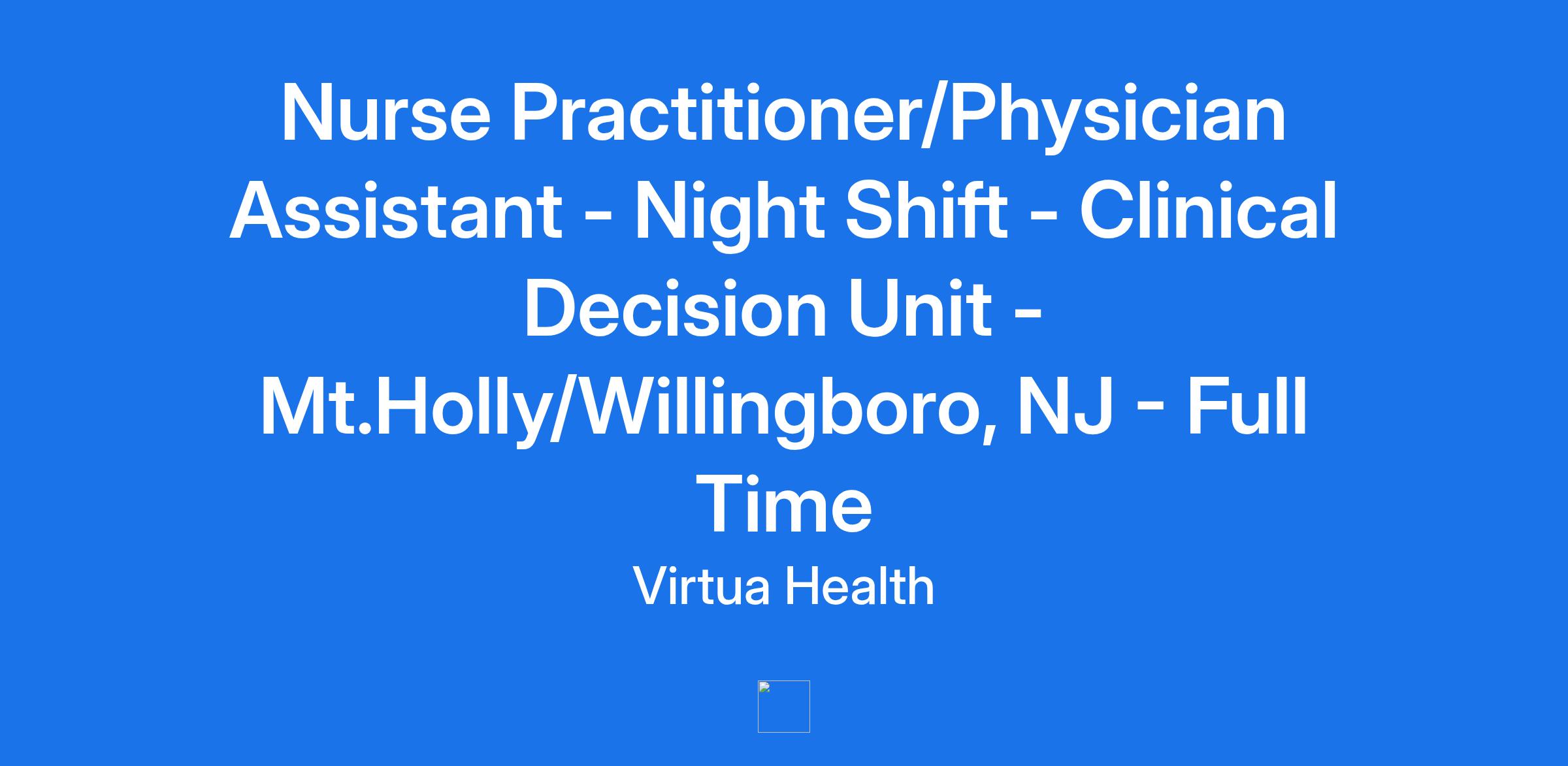 Nurse Practitioner/Physician Assistant - Night Shift - Clinical Decision Unit - Mt.Holly/Willingboro, NJ - Full Time