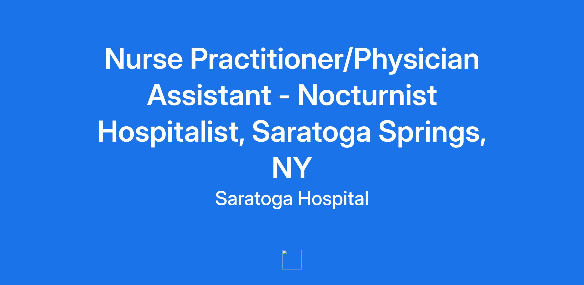 Nurse Practitioner/Physician Assistant - Nocturnist Hospitalist, Saratoga Springs, NY
