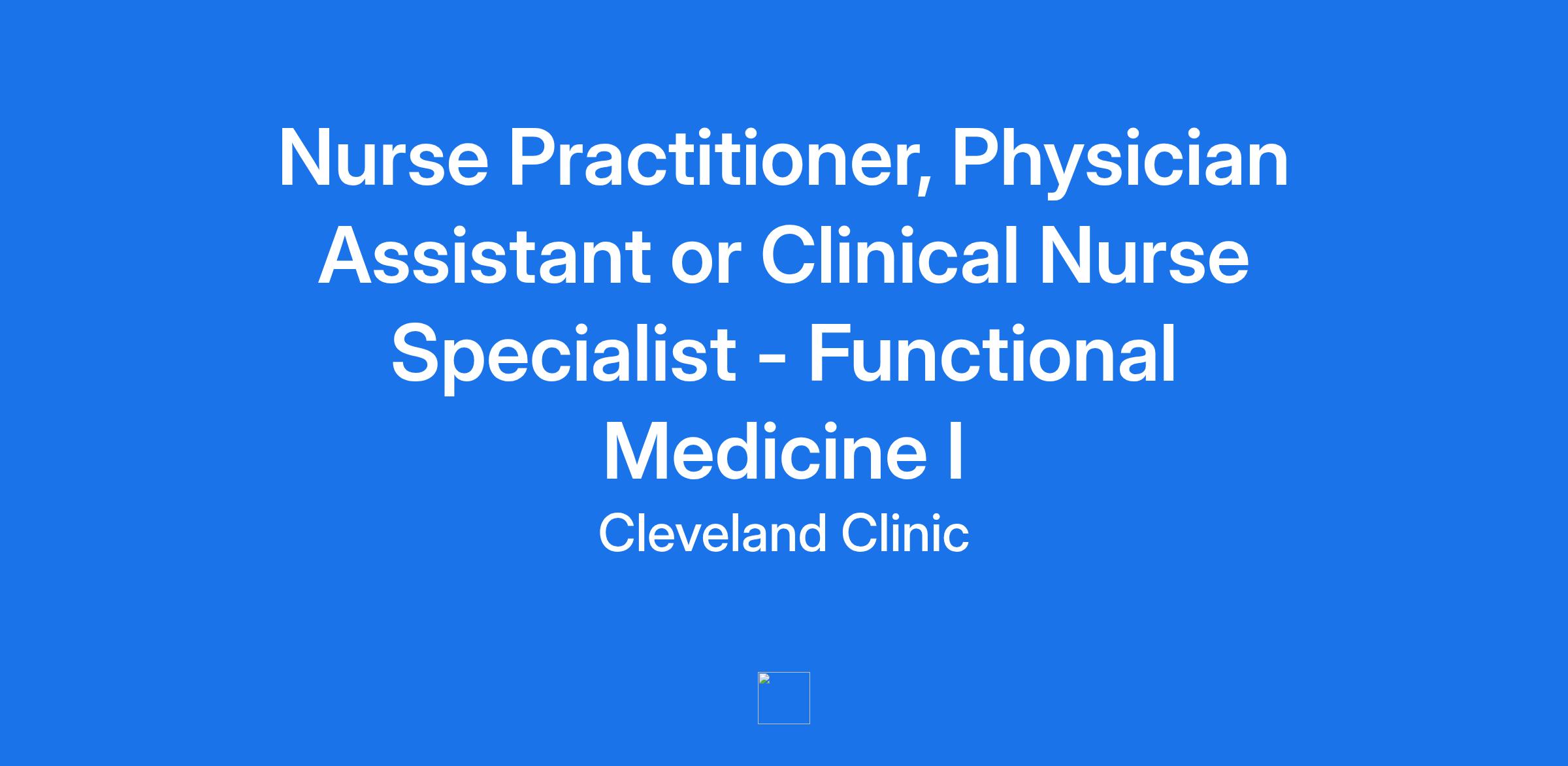 Nurse Practitioner, Physician Assistant or Clinical Nurse Specialist - Functional Medicine I