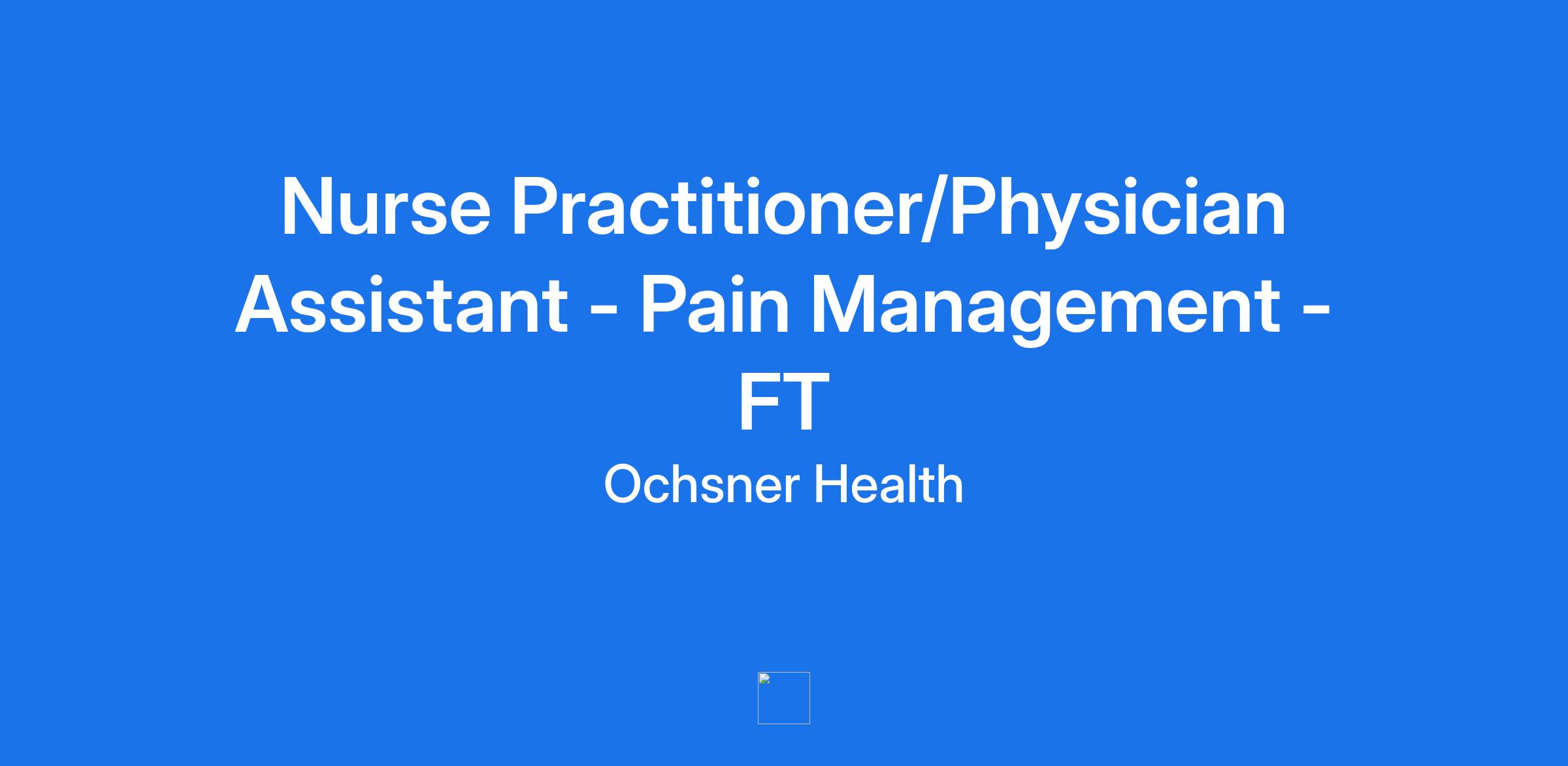 Nurse Practitioner/Physician Assistant - Pain Management - FT