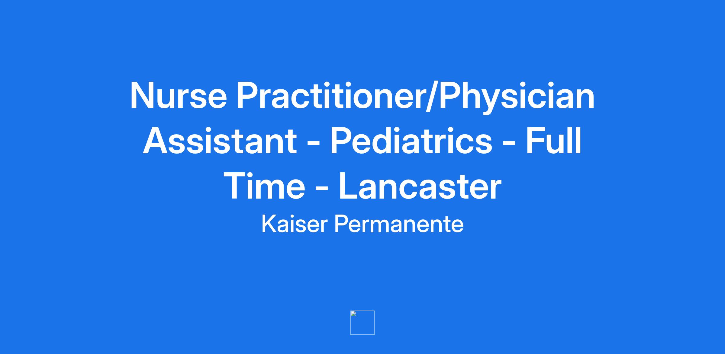 Nurse Practitioner/Physician Assistant - Pediatrics - Full Time - Lancaster