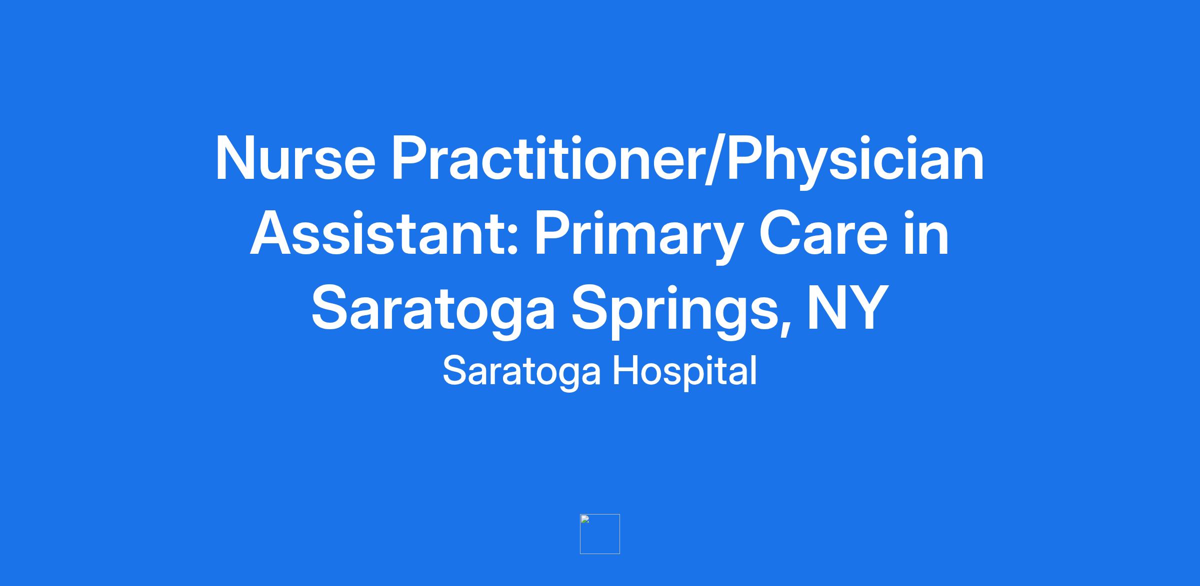 Nurse Practitioner/Physician Assistant: Primary Care in Saratoga Springs, NY