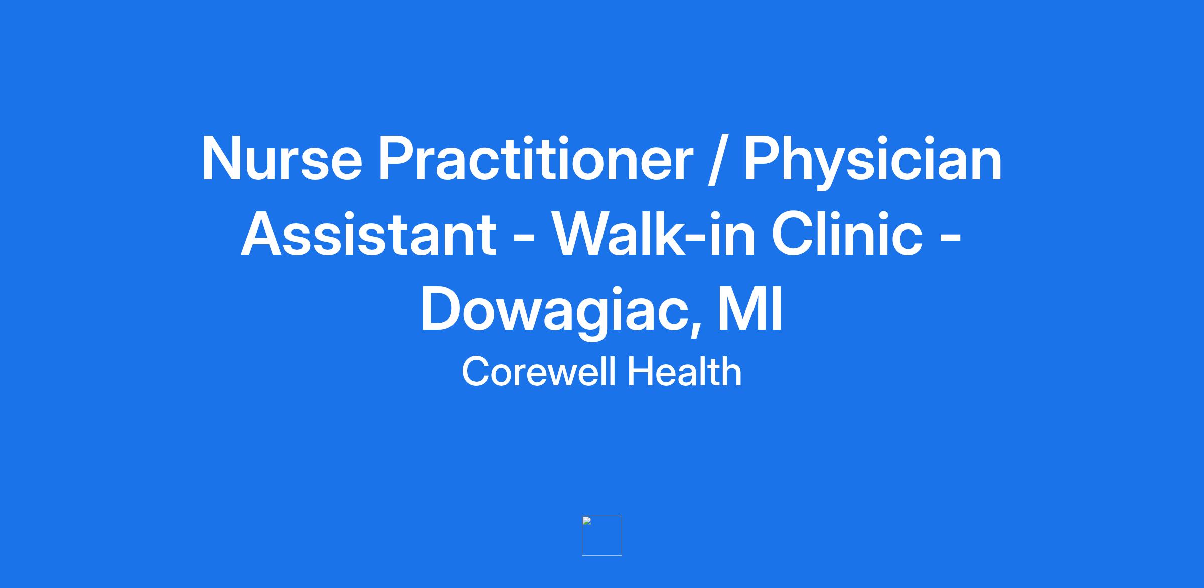 Nurse Practitioner / Physician Assistant - Walk-in Clinic - Dowagiac, MI