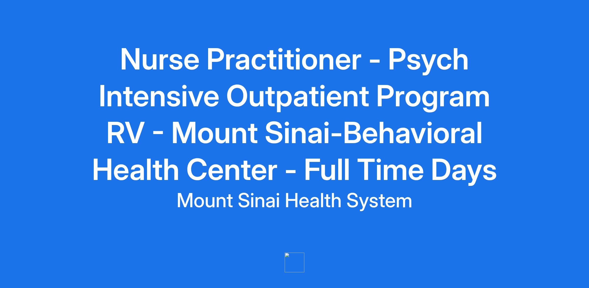 Nurse Practitioner - Psych Intensive Outpatient Program RV - Mount Sinai-Behavioral Health Center - Full Time Days