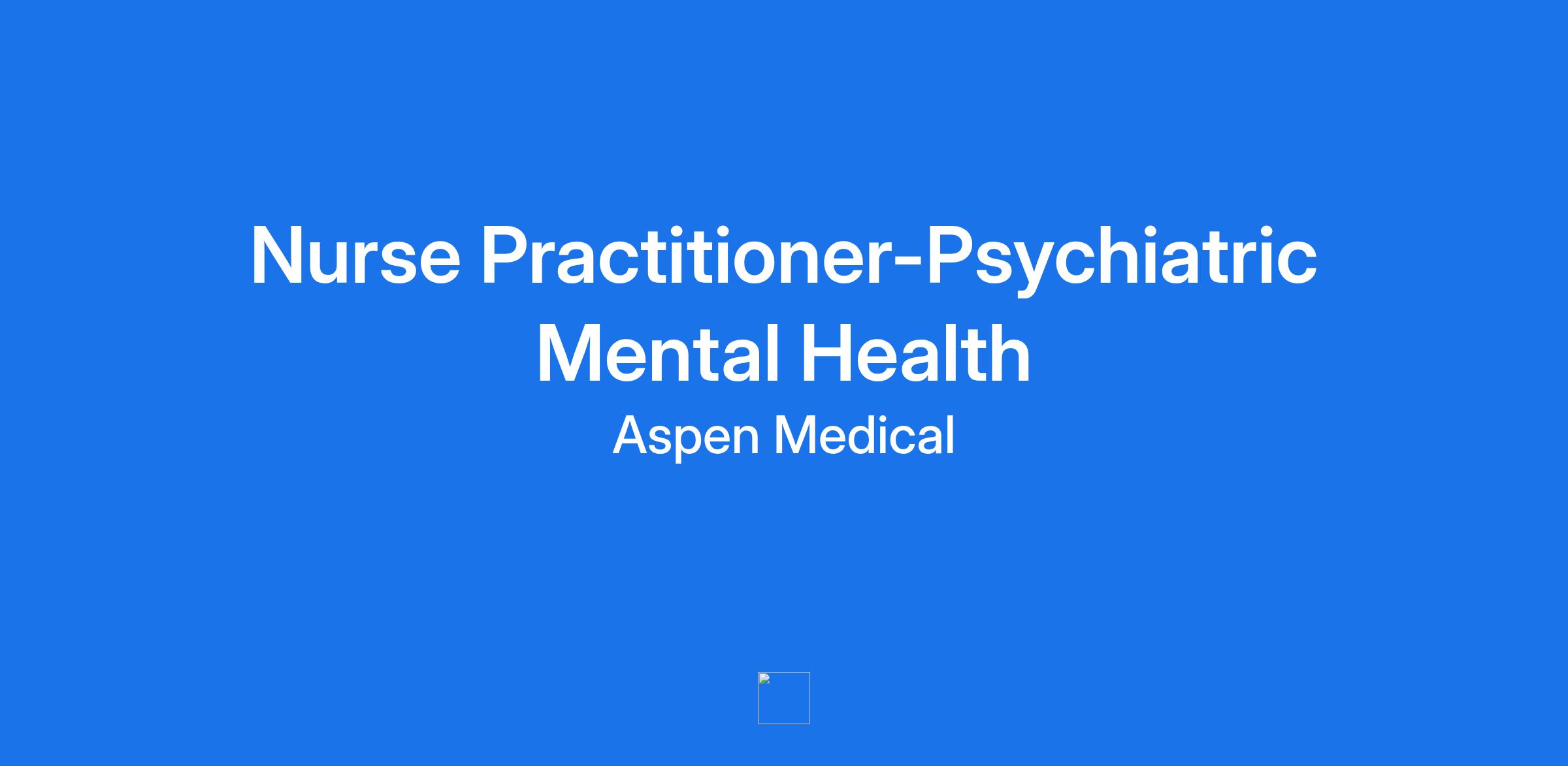 Aspen Medical has an exciting opportunity for Psychiatric Mental Health Nurse Practitioner to partner with us in providing quality medical care to patients within a transitional setting. Psychiatric Mental Health Nurse Practitioner, alongside fellow team members, will be fully entrusted to ensure that the utmost competent care and safety is consistently delivered with compassion to the patient population.