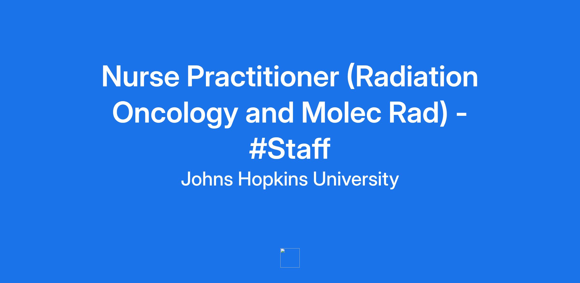 We are seeking a **_Nurse Practitioner_** who will work collaboratively within a multidisciplinary health team and is responsible for providing comprehensive and age-appropriate care to both well and ill patients. Educates patients and families and intervenes in acute or chronic illness. Practices within the guidelines of the department and institution and in accordance with the Nurse Practitioner-Physician Written Agreement required and approved by the State of Maryland and the Nurse Practice Act of the State of Maryland. Is granted Senior Staff privileges by the Johns Hopkins University School of Medicine. These privileges are reviewed annually by the University and the Hospital.