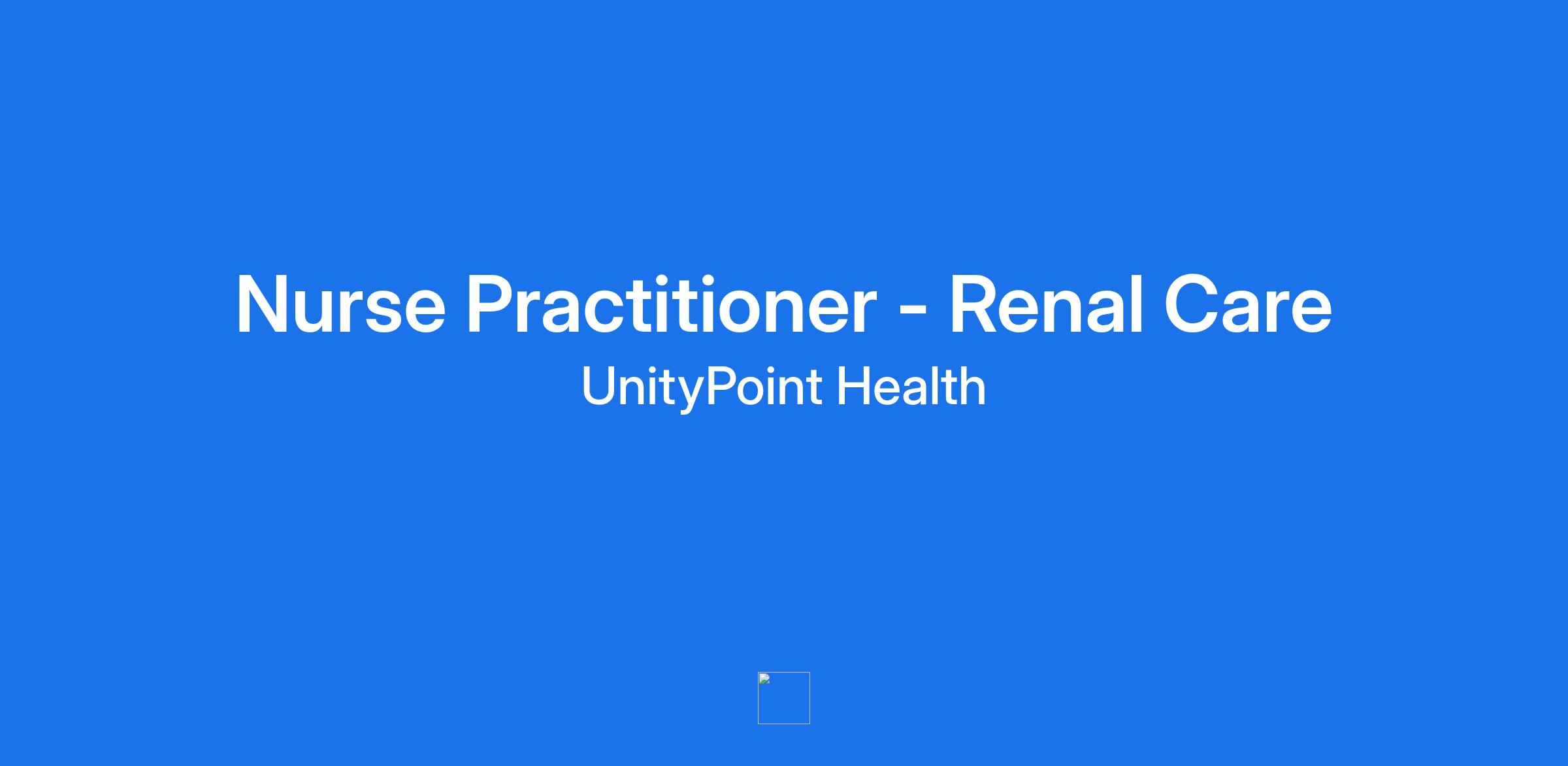 UnityPoint Health is actively recruiting for a Nephrology APP to join our team in Fort Dodge, Iowa Choose a career that matters at UnityPoint Health. At UnityPoint Health, we believe that our patient-centered vision and physician-driven philosophy, along with our one team approach, ensures every patient knows just how much they matter to this world. Commitment to our team has earned us recognition as a Top 150 Places to Work in Healthcare by Becker’s Healthcare. Come be an essential part of our core purpose—to improve the health of the people and communities we serve. At UnityPoint Health, you matter.