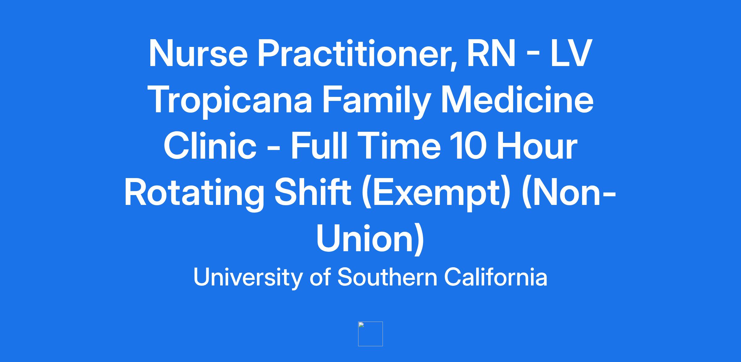 Nurse Practitioner, RN - LV Tropicana Family Medicine Clinic - Full Time 10 Hour Rotating Shift (Exempt) (Non-Union)