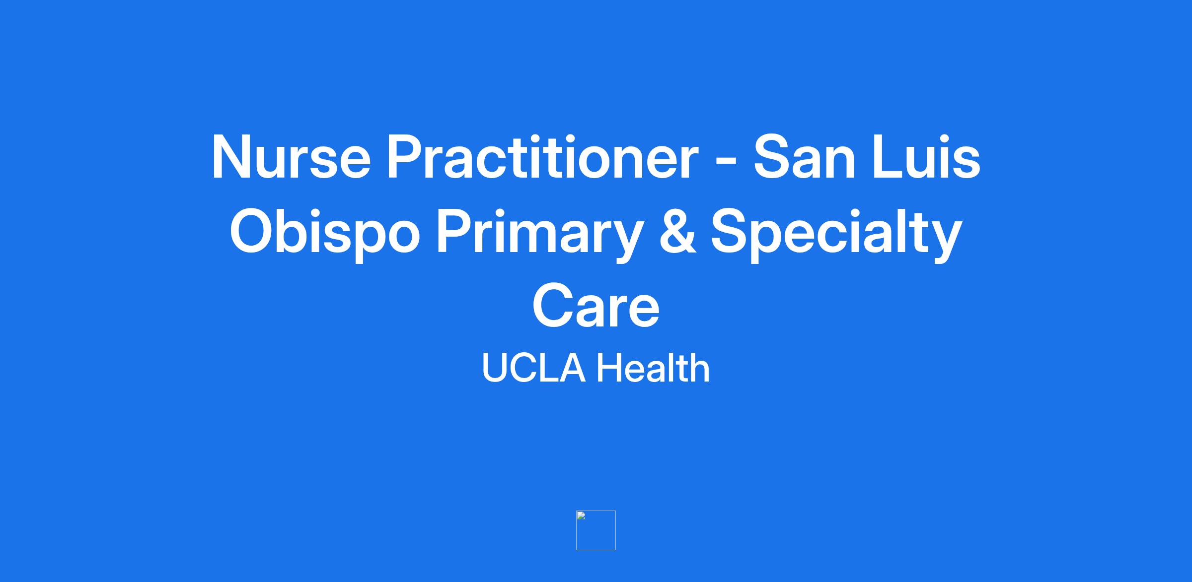 Nurse Practitioner - San Luis Obispo Primary & Specialty Care