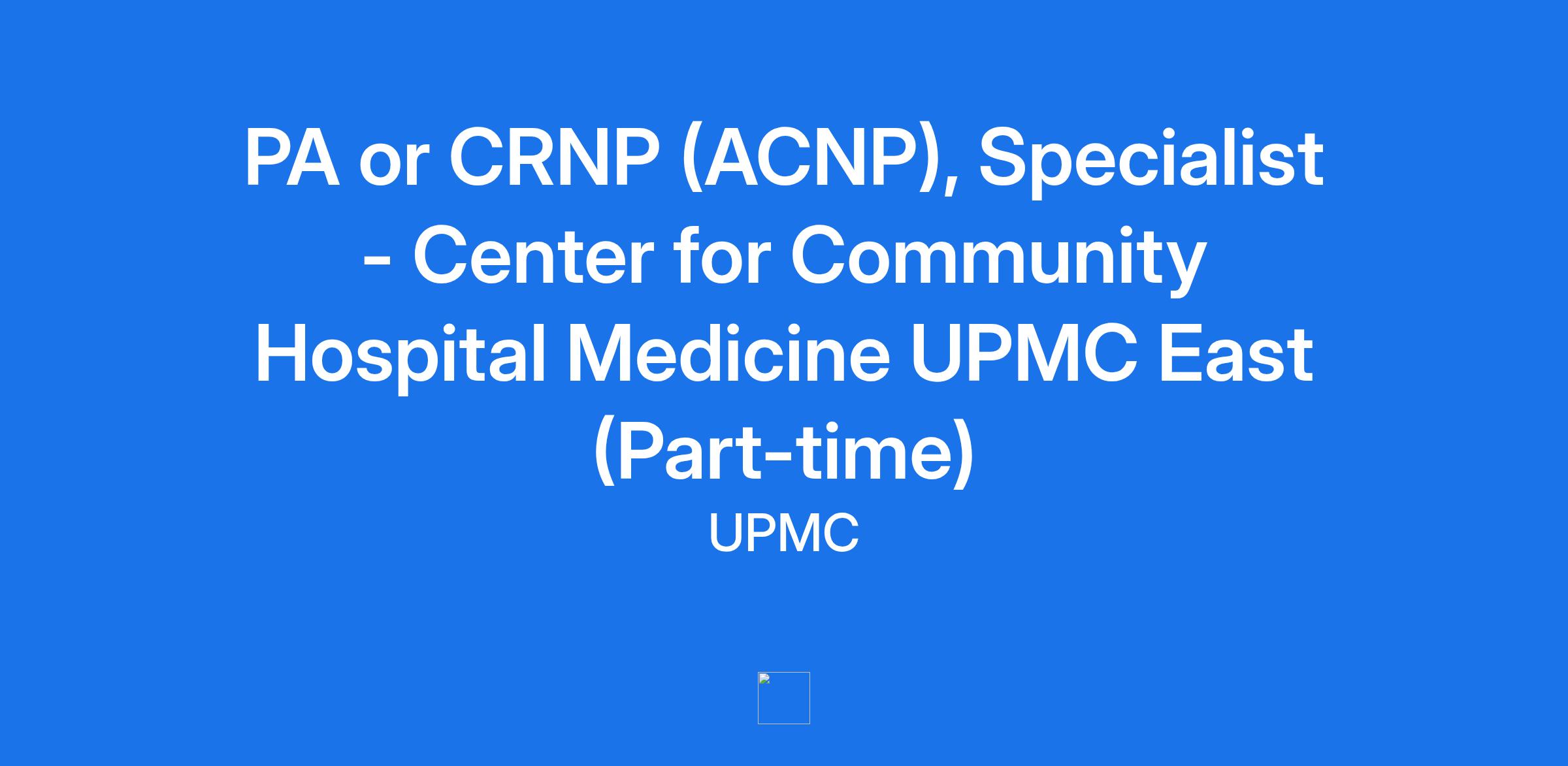 PA or CRNP (ACNP), Specialist - Center for Community Hospital Medicine UPMC East (Part-time)