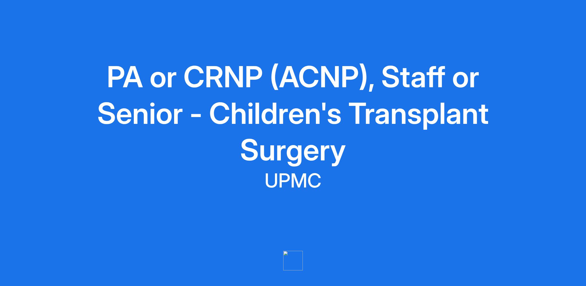 University of Pittsburgh Physicians is hiring a Full-Time Physician Assistant or Certified Registered Nurse Practitioner (ACNP) to help support Children's Inpatient Abdominal Transplant Surgery.