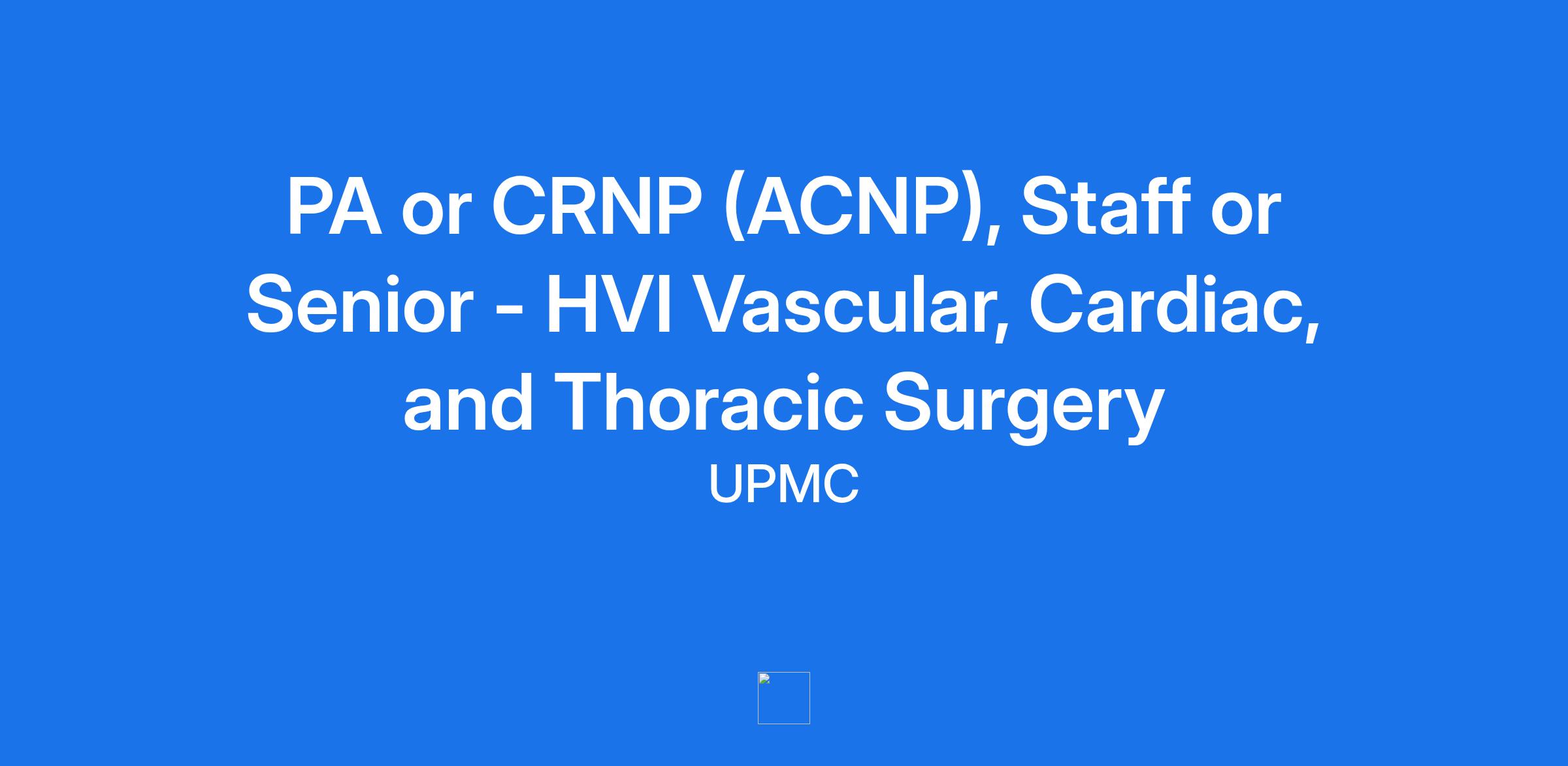 PA or CRNP (ACNP), Staff or Senior - HVI Vascular, Cardiac, and Thoracic Surgery