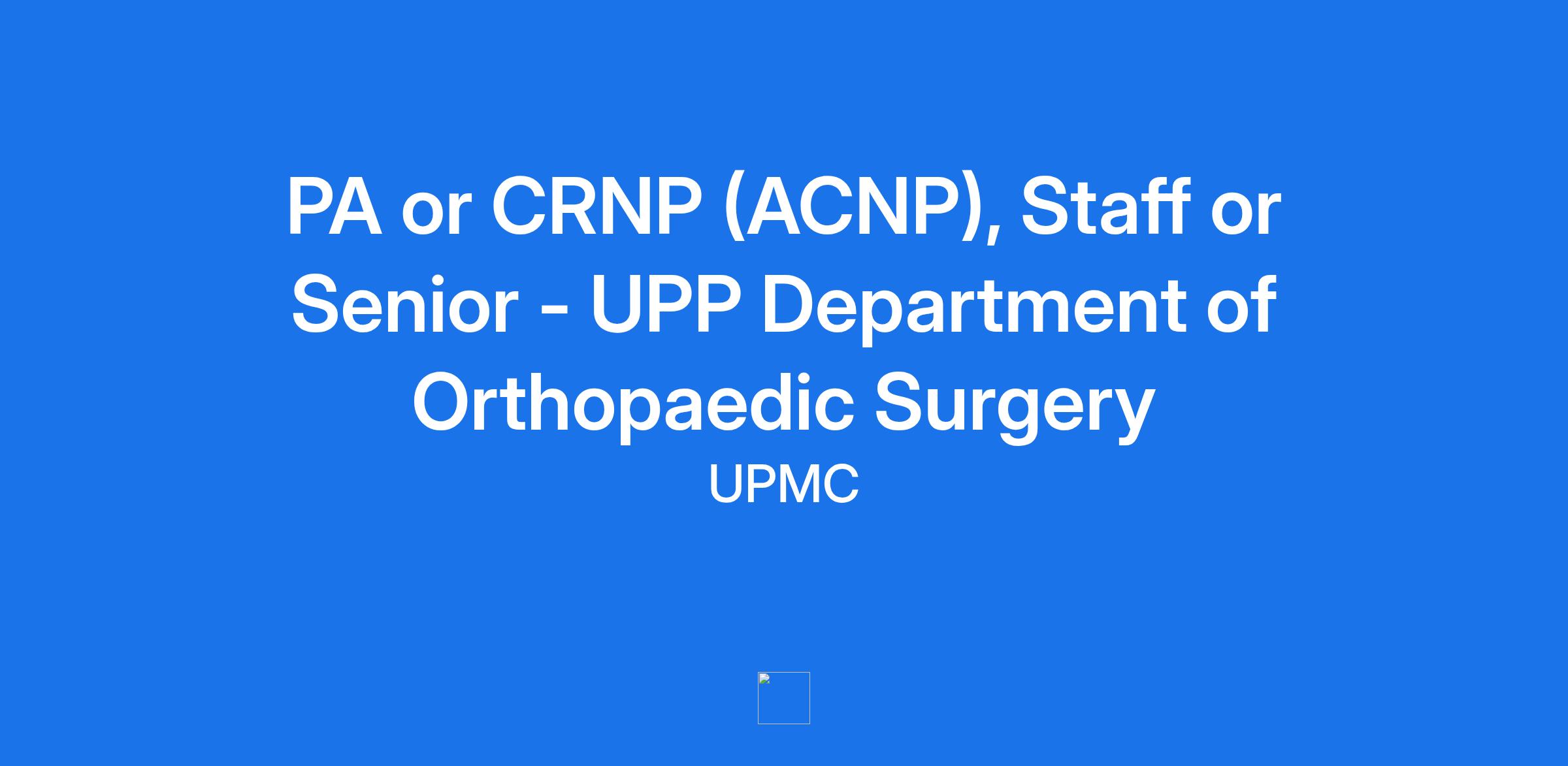 PA or CRNP (ACNP), Staff or Senior - UPP Department of Orthopaedic Surgery