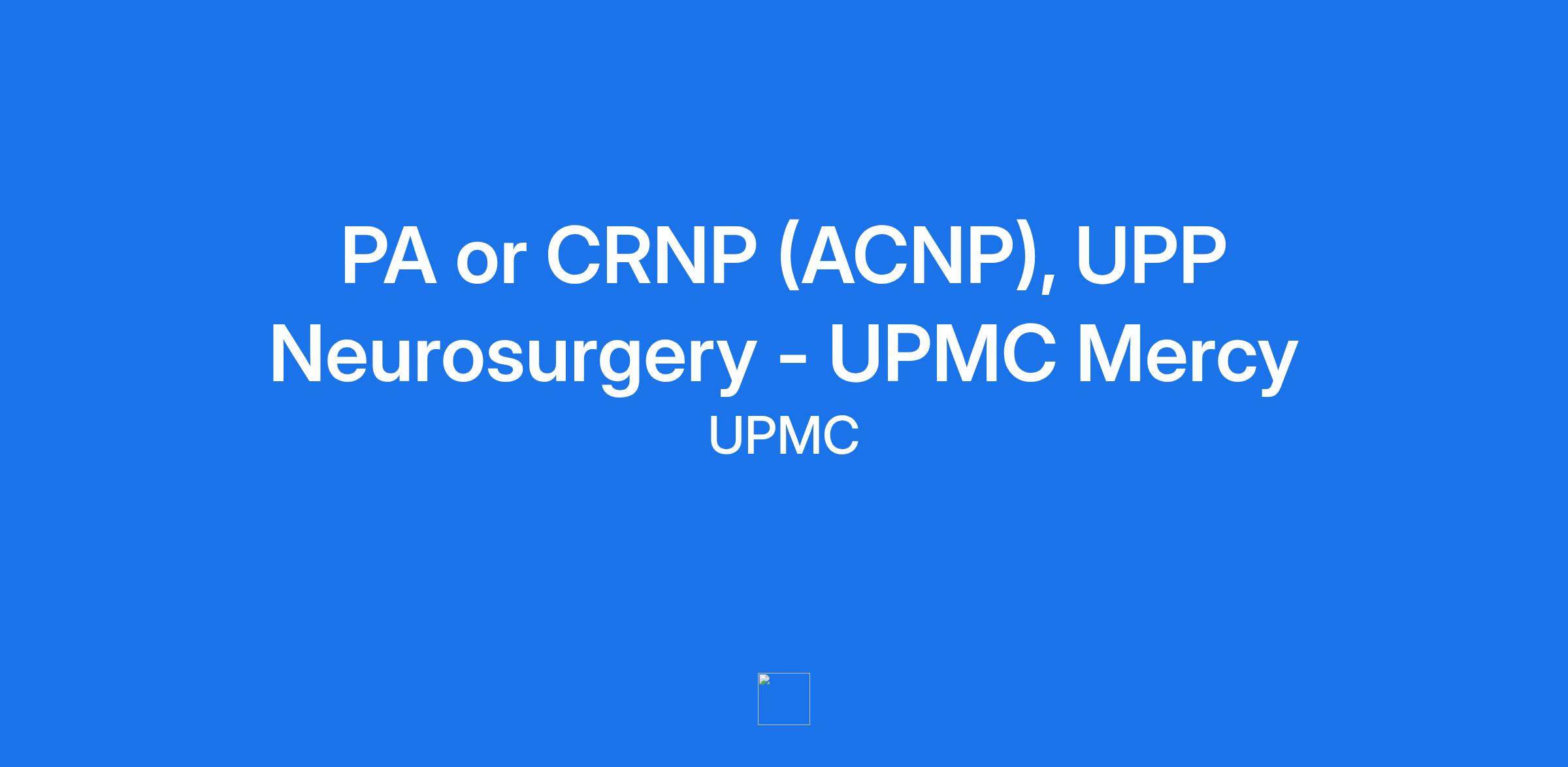 PA or CRNP (ACNP), UPP Neurosurgery - UPMC Mercy