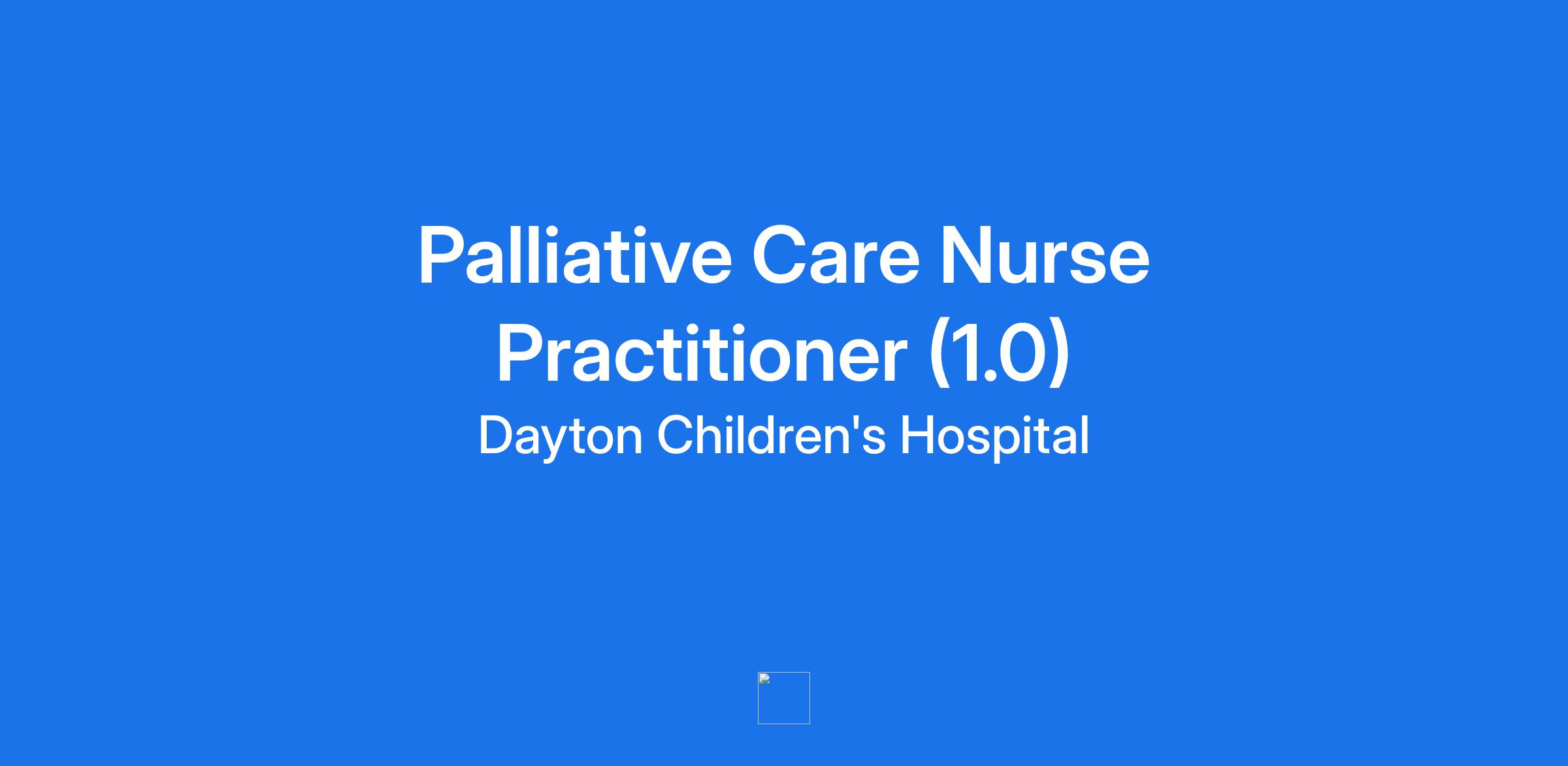 Facility:Dayton Children's - Main CampusDepartment:APPs - Kuck, Patel, De DiosSchedule:Full timeHours:40Job Details:The palliative care NP will join a growing palliative care team consisting of physicians, social workers, chaplains, and nurses. Communication skills, compassion, and collaboration are highly valued. The palliative care team works closely with families and the patient’s primary care team to develop and implement goals of care including but not limited to end of life care, medication management and alternate therapeutics to minimize pain and suffering, and inpatient and outpatient management of care concerns. The palliative care NP will be expected to participate routinely in family centered rounds with a multidisciplinary team and document on patients independently or with the primary team for those on the inpatient service . The NP will be expected to manage patient care via phone, telemedicine, clinic visits and/or home visits for the outpatient service.