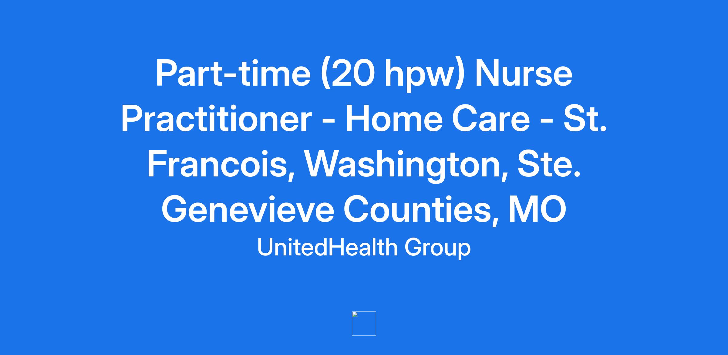 **Home Base Medical Care, part of the Optum family of businesses, is seeking a Part-time (20 hpw) Nurse Practitioner to join our team in St. Francois, Washington and Ste. Genevieve Counties, MO. Optum is a clinician-led care organization that is changing the way clinicians work and live. **