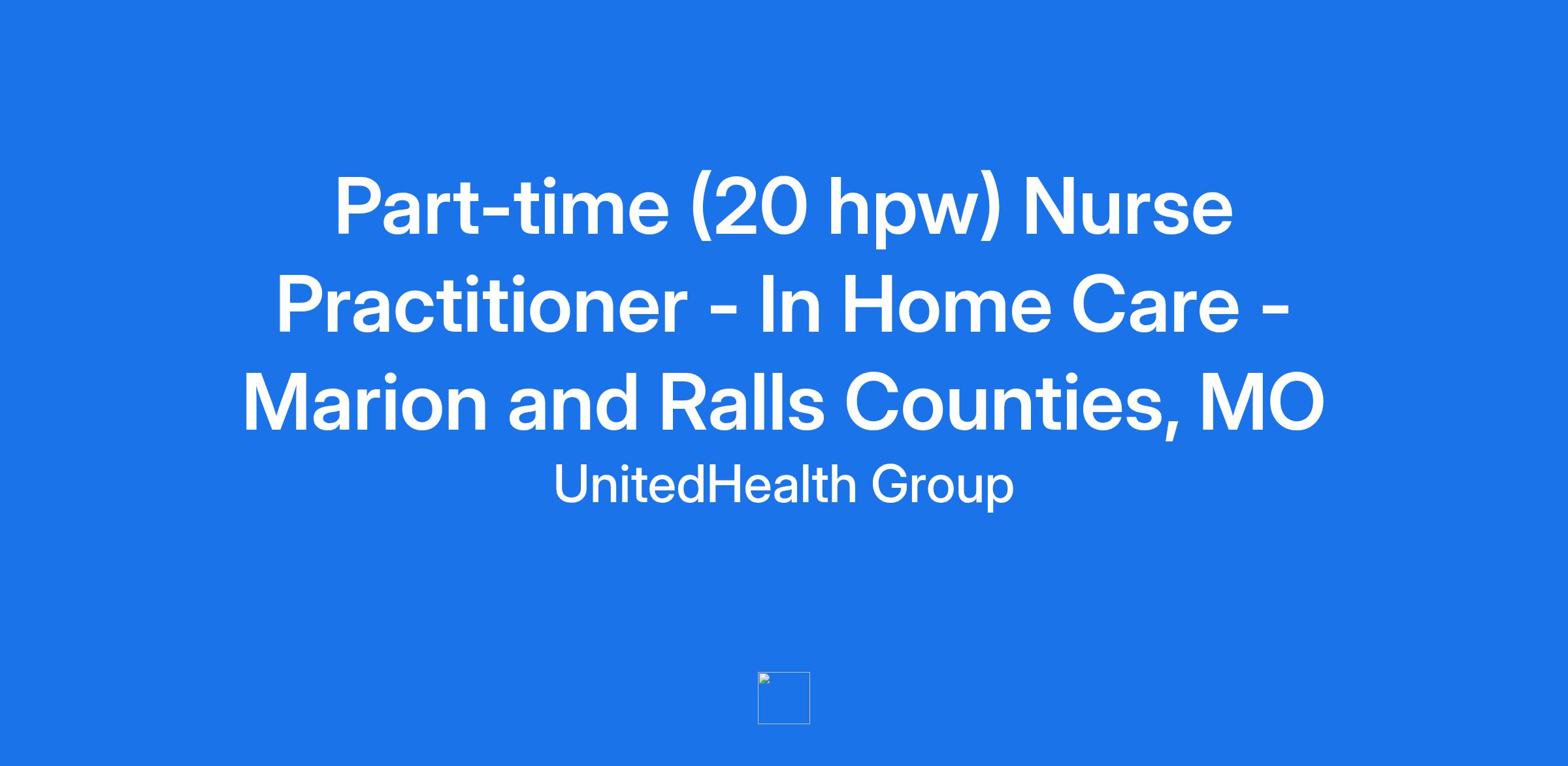 **Optum is seeking a Part-time (20 hpw) Nurse Practitioner to join our Home-based Medical Care team in Marion and Ralls Counties, MO. Optum is a clinician-led care organization, that is creating a seamless health journey for patients across the care continuum.**