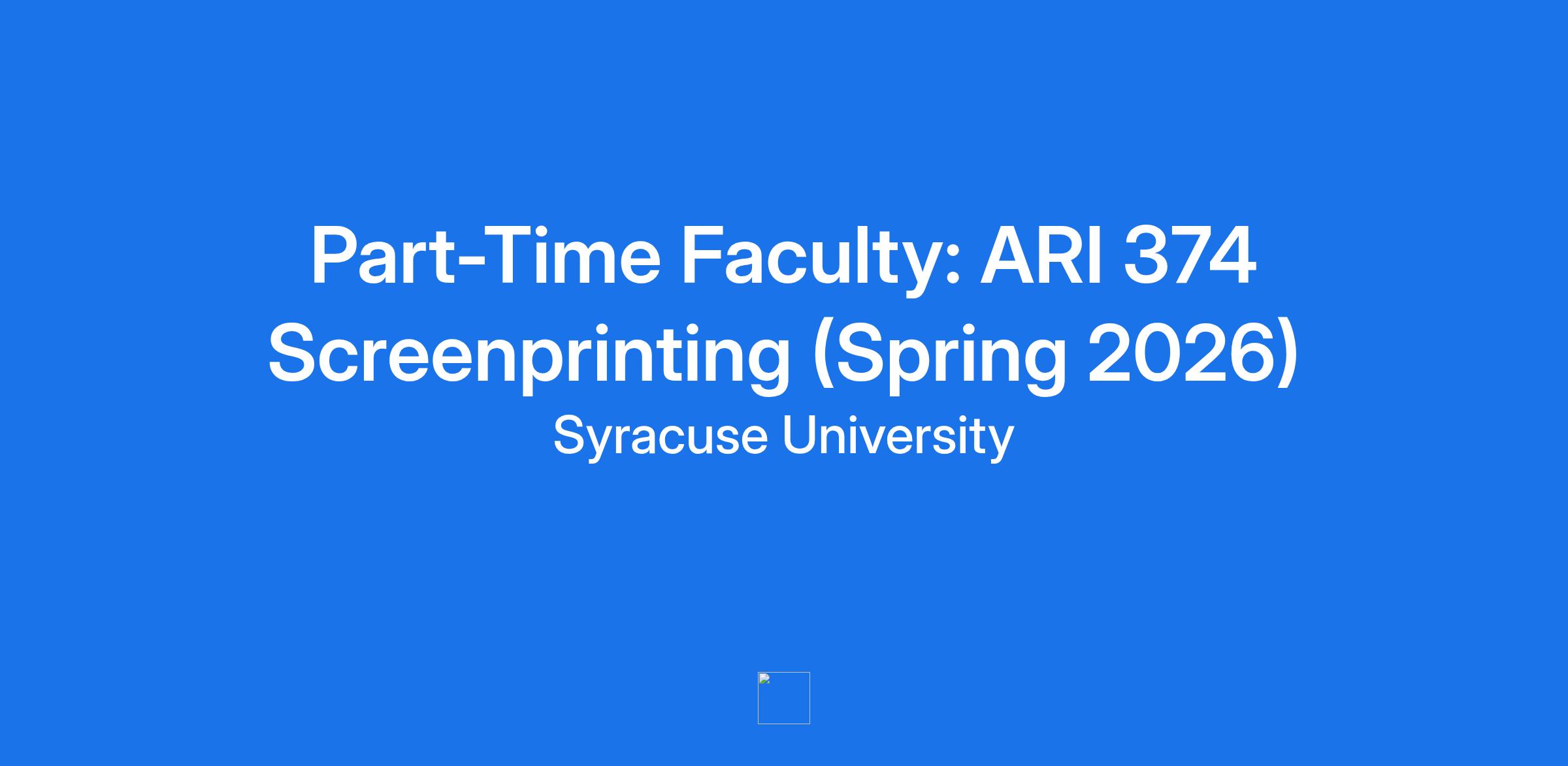 The School of Art within the College of Visual and Performing Arts seeks a Part-Time Instructor to teach ARI 374 Screenprinting, a three credit hour course, during the Spring semester, 2026.
