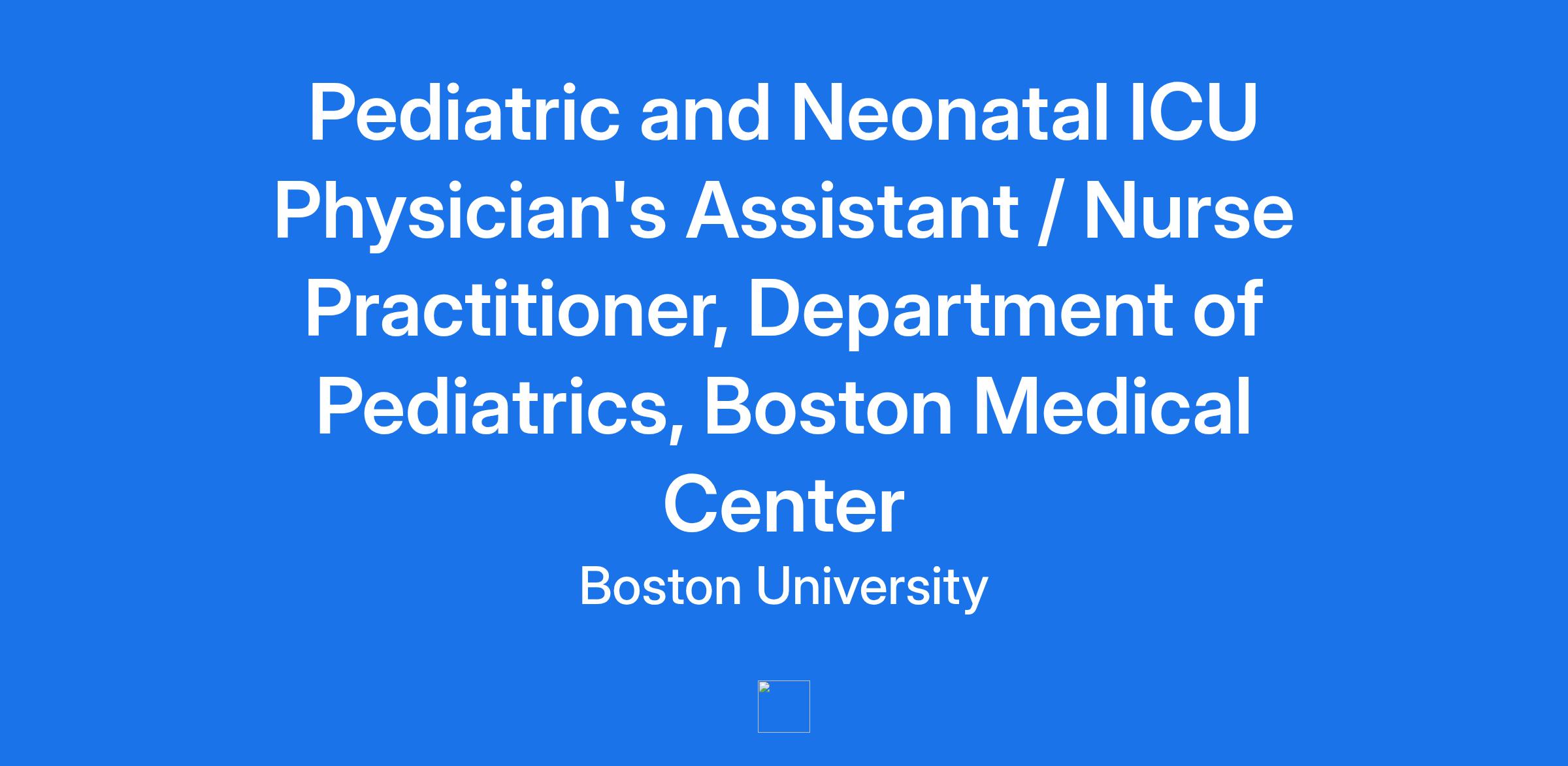 **Pediatric and Neonatal ICU Physician's Assistant / Nurse Practitioner, Department of Pediatrics, Boston Medical Center**