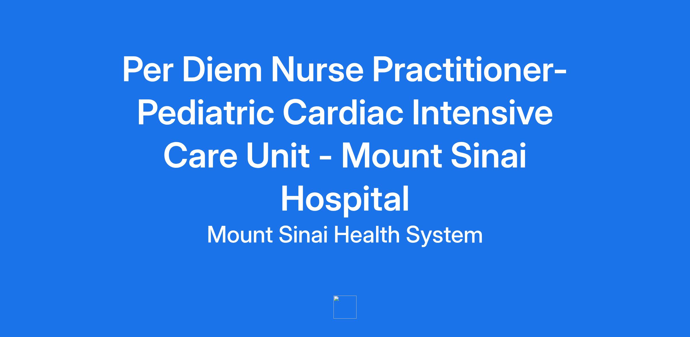 **Job Title -** **Per Diem Nurse Practitioner-Pediatric Cardiac Intensive Care Unit - Mount Sinai Hospital**
