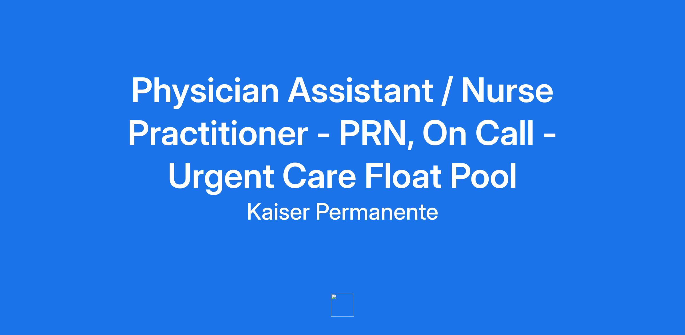 TITLE: Physician Assistant / Nurse Practitioner - PRN, On Call - Urgent Care Float Pool
