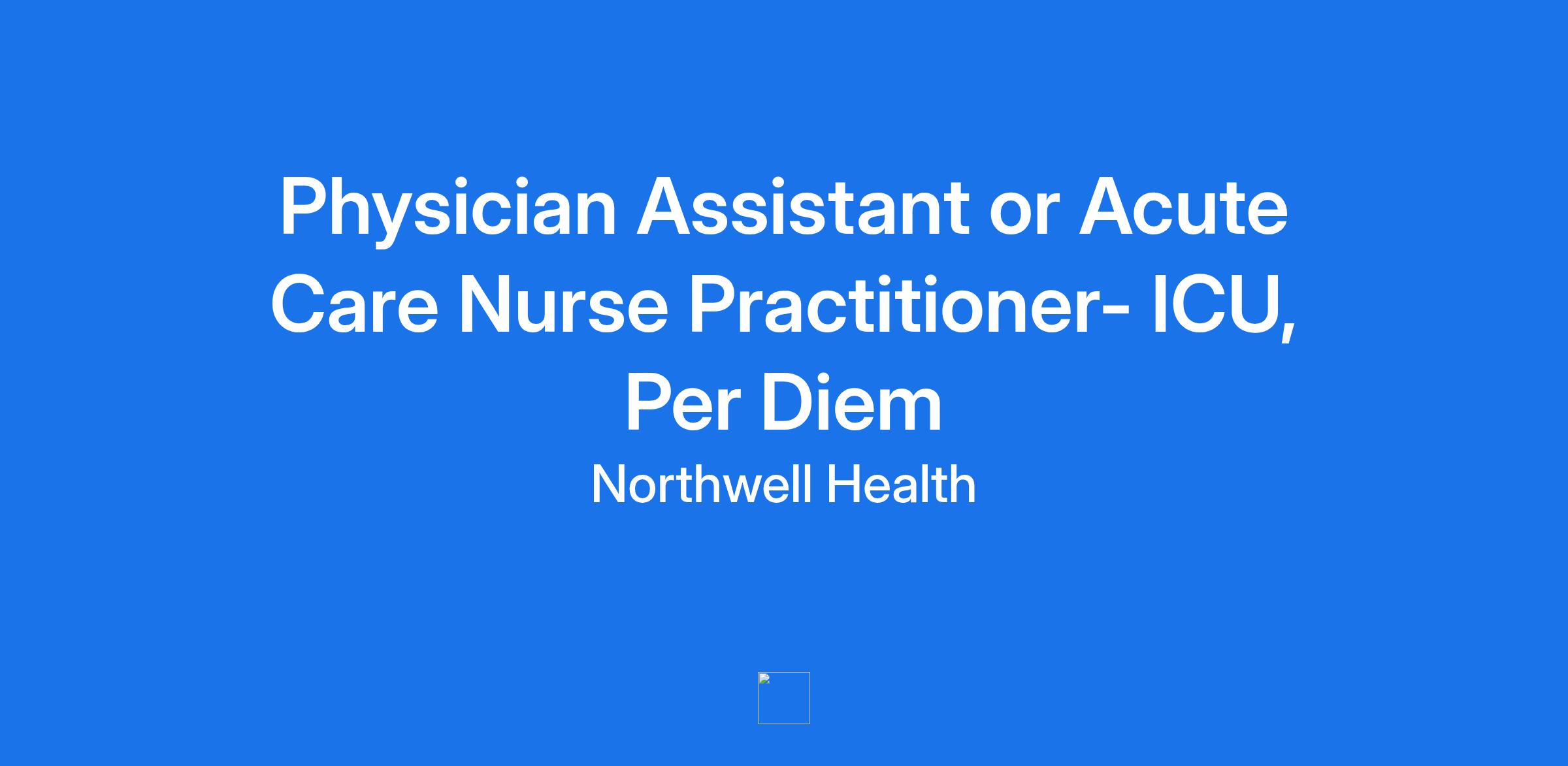 Physician Assistant or Acute Care Nurse Practitioner- ICU, Per Diem