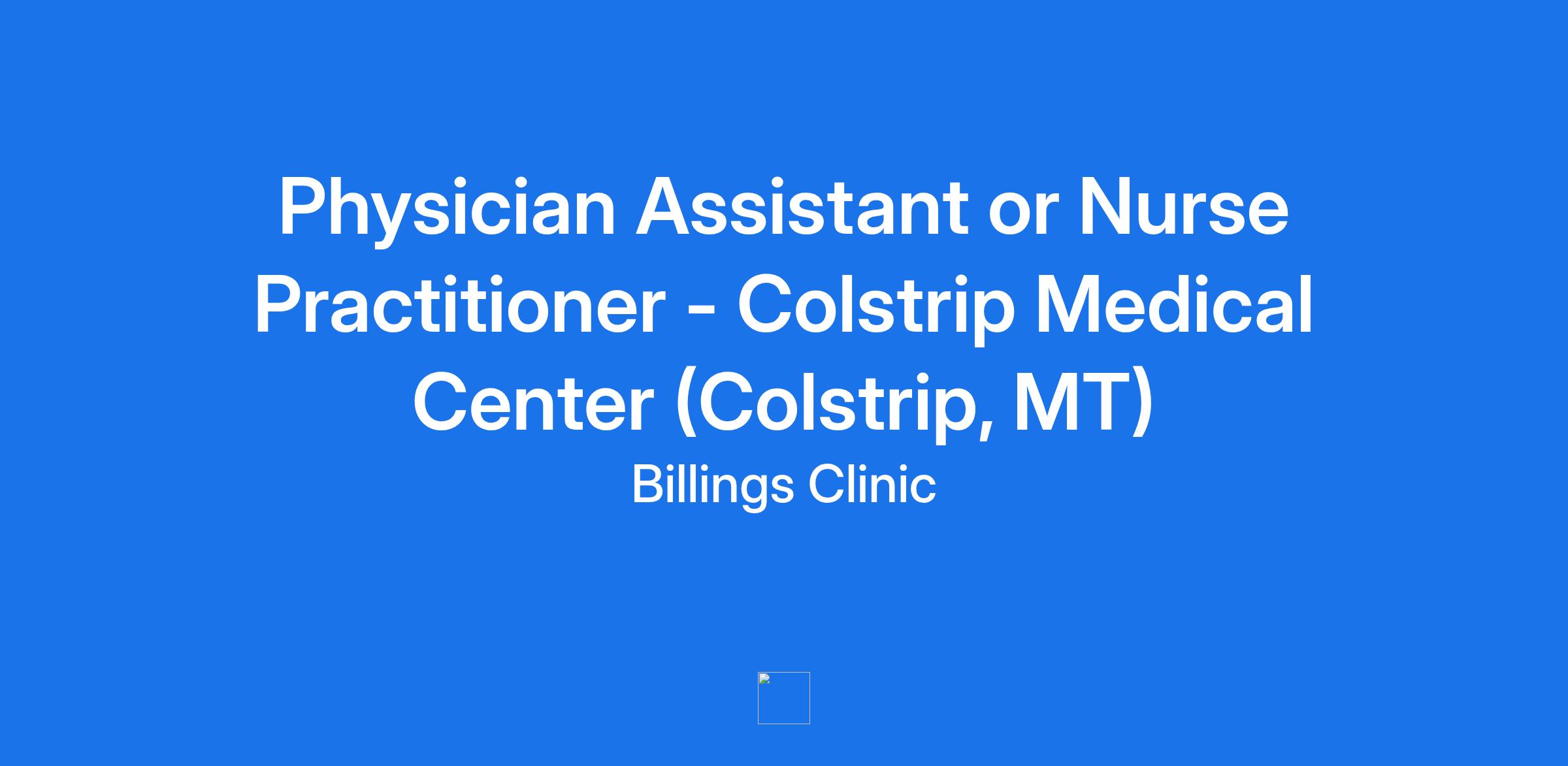 Physician Assistant or Nurse Practitioner - Colstrip Medical Center (Colstrip, MT)