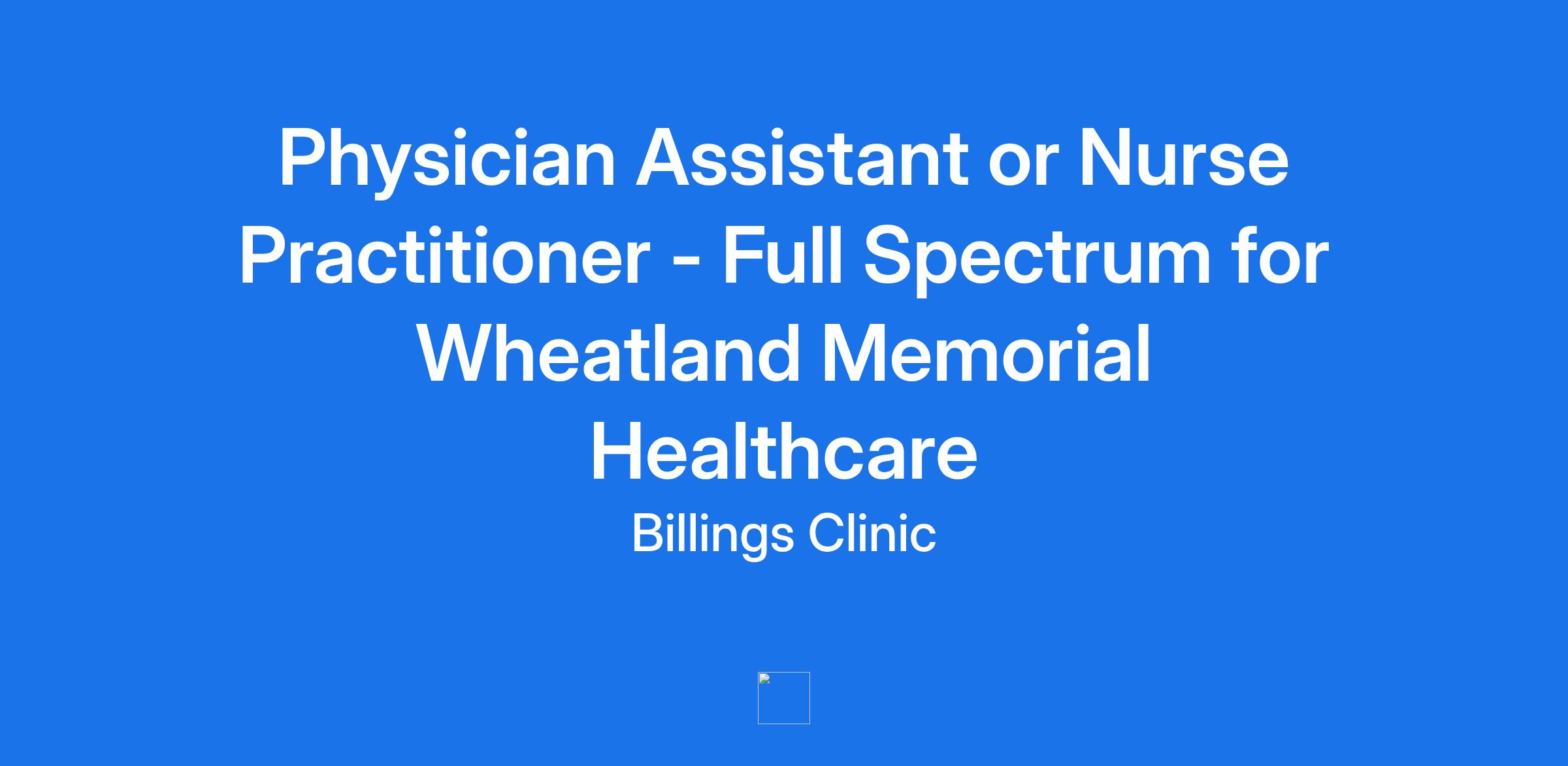 Physician Assistant or Nurse Practitioner - Full Spectrum for Wheatland Memorial Healthcare