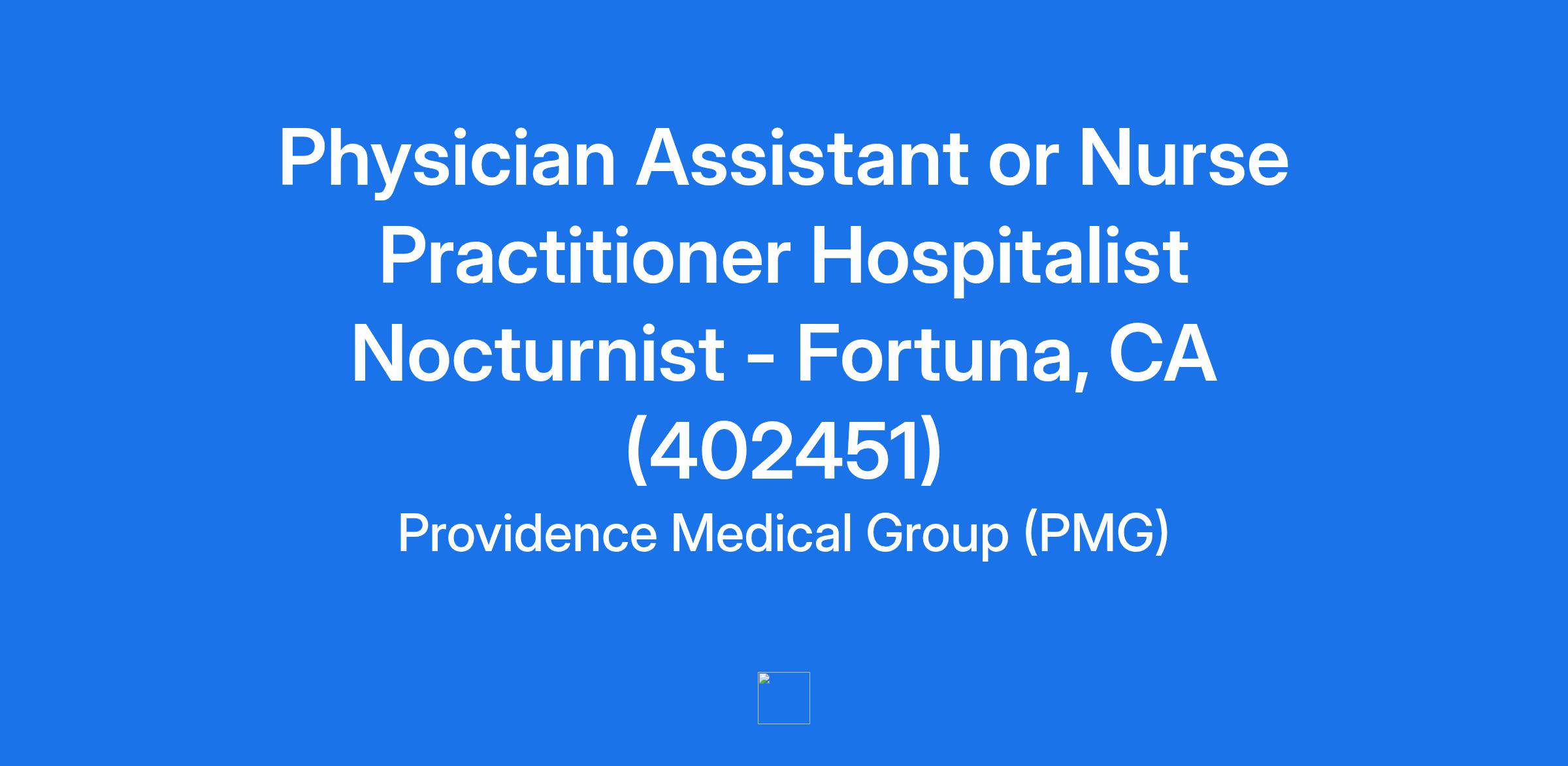 Physician Assistant or Nurse Practitioner Hospitalist Nocturnist - Fortuna, CA (402451)