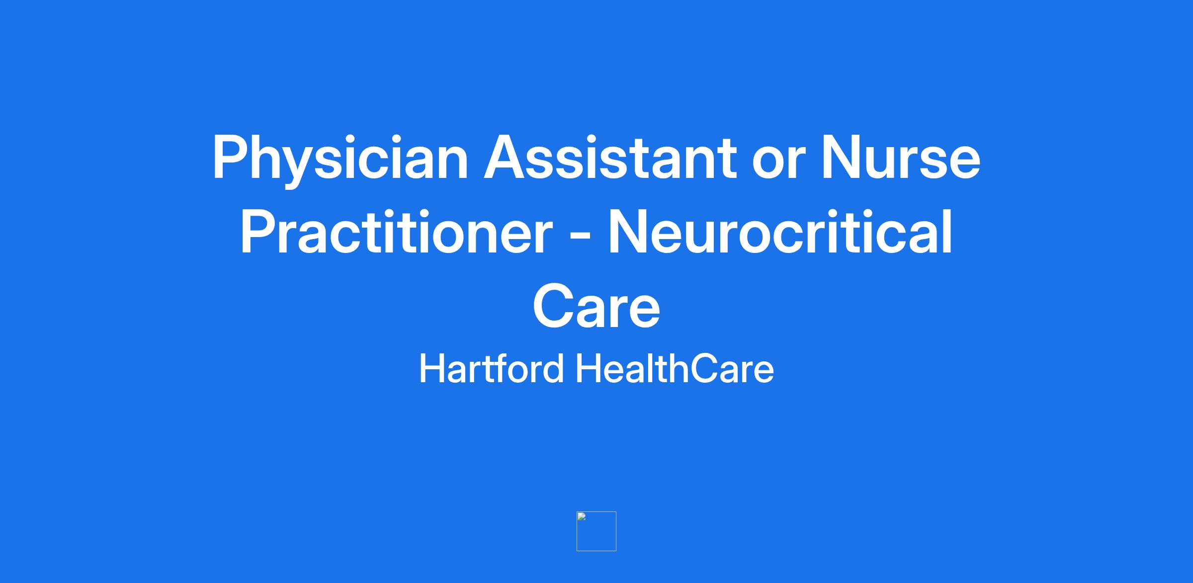 *Advanced Practitioner Benefits:* * *Market-leading*compensation and benefits and generous paid time off * Paid CME time off plus CME budget, reimbursed professional licenses and dues * Enhanced *Tuition Assistance*and Higher Education Partnerships * Voluntary benefits include student loan programs, home, auto, renters insurance, identity theft protection, legal services, pet insurance and more! * Employee *discount programs*and colleague assistance programs offering resources and information for personal and work-life issues * Family care benefits through_Care.com_ including *emergency back-up care benefit*for children, adults and even pets! *Position Details:* Hartford Hospital is seeking a Physician Assistant or Nurse Practitioner to join their Neurocritical Care team! The Advanced Practice Providers (APPs) are part of a multidisciplinary team that plans and delivers care for critical neuroscience patients with a focus on those with neurological and neurosurgical diseases and related disorders. Our critical patient population includes complex strokes, skull base surgery, status epilepticus, tumor resections, spinal cord injury, DBS, and other complex diseases.*The APPs rotate in the stepdown units.* *Role*: Open to Physician Assistants or Acute Care Nurse Practitioners *Location*: 79 Jefferson Street, Hartford, 06102 *Setting*: Inpatient, Critical Care, Neurocritical care *Schedule:*Full-time, day/night rotating, including weekends and holidays. *Premium differentials offered*. *Call schedule: *No call *Ayer Neuroscience Institute* The Ayer Neuroscience Institute is a rapidly expanding Institute with a focus on comprehensive patient care, academics, and research. The Institute enjoys the resources of a system committed to excellence in patient quality and experience and boasts an impressive staff of world class Neuroscience leaders which includes over 200 Neuroscience physicians and advanced practitioners. Join a team with training and expertise in the areas of vascular neurology, neuro-oncology, neuromuscular neurology, movement disorders, epilepsy, headache and pain management, cognitive neurology, neurosurgery, neuro ophthalmology and general neurology! *Hartford HealthCare supports Nurse Practitioners and Physician Assistants in practice:* · Dedicated support and voice for our for Nurse Practitioners and Physician Assistants through the *Office of Advanced Practice* directed by Sarah Clark, MBA, MHS, PA-C, BSN, RN, System Director of Advanced Practice · Hartford HealthCare is one of the largest, *non-profit*, fully-integrated healthcare systems providing patient care in the state, allowing our providers to care for their patients no matter where they reside in Connecticut · With tools like *EPIC*, Hartford HealthCare’s state of the art clinical and informatics technology promotes improved patient outcomes, streamlined continuity of care and superior provider satisfaction *Nurse Practitioner and Physician Assistants Role Scope:* Under established guidelines and in collaboration and/or supervision with the practice physician(s), Advanced Practitioners perform routine physical examinations, and formulate medical, educational, and psychosocial plans to treat patients. In consultation with the physician(s) and care team members, Advanced Practitioners develop plans for further evaluation of health needs, e.g., referral to other health team members or specialists. Advanced Practitioners provide appropriate treatment for problems within the scope of the provider’s practice as designated by protocols and identifies problems outside of their scope of practice and refers appropriately to physician. *About Hartford Hospital:* *Hartford Hospital is one of the largest and most respected teaching hospitals in New England*. The Hospital is a Level 1 Trauma Center which provides *cutting edge treatment* to its patients. This is made possible by being home to the *largest robotic surgery center in the Northeast* and the Center for Education, Simulation and Innovation (CESI), one of the *most-advanced medical simulation training centers in the world*. When hospitals cannot provide the advanced care, expertise, and new treatment options their patients require, they turn to Hartford Hospital. *About Hartford HealthCare:* · Honored as a “*Best Organizations for Leadership Development*” by the National Center for Healthcare Leadership (NCHL) · Prestigiously named one of the “*Best Hospitals to Work for in Connecticut*” by the Becker's Hospital Review · Committed to *continuous development* through The Center for Education Stimulation & Innovation (CESI), our Provider Leadership Development Institute and a robust on demand learning platform including CME, special courses, learning series and tools and resources · Established *Mentorship and Orientation* programs specially designed for newly hired providers and providers new to practice *Requirements:* · *Licensure*: Unrestricted State of Connecticut Medical License (or eligible) · *Training*: Certified or board-eligible Physician Assistant or Acute Care Nurse Practitioner · *Experience*: New graduates welcome to apply! o We have extensive onboarding including a 6-month immersion orientation. We provide supervision to teach skills such as arterial lines, central lines, chest tubes, feeding tubes, and transcranial dopplers. Interested candidates please contact Victor Rodriguez, Advanced Practice Recruiter, at Victor.Rodriguez@hhchealth.orgor (959) 261-7619. */As an Equal Opportunity Employer/Affirmative Action employer, the organization will not discriminate in its employment practices due to an applicant’s race, color, religion, sex, sexual orientation, gender identity, national origin, and veteran or disability status./* **Job:** **Critical Care* **Organization:** **Hartford Hospital* **Title:** *Physician Assistant or Nurse Practitioner - Neurocritical Care* **Location:** *Connecticut-Hartford-80 Seymour Street (10008)* **Requis