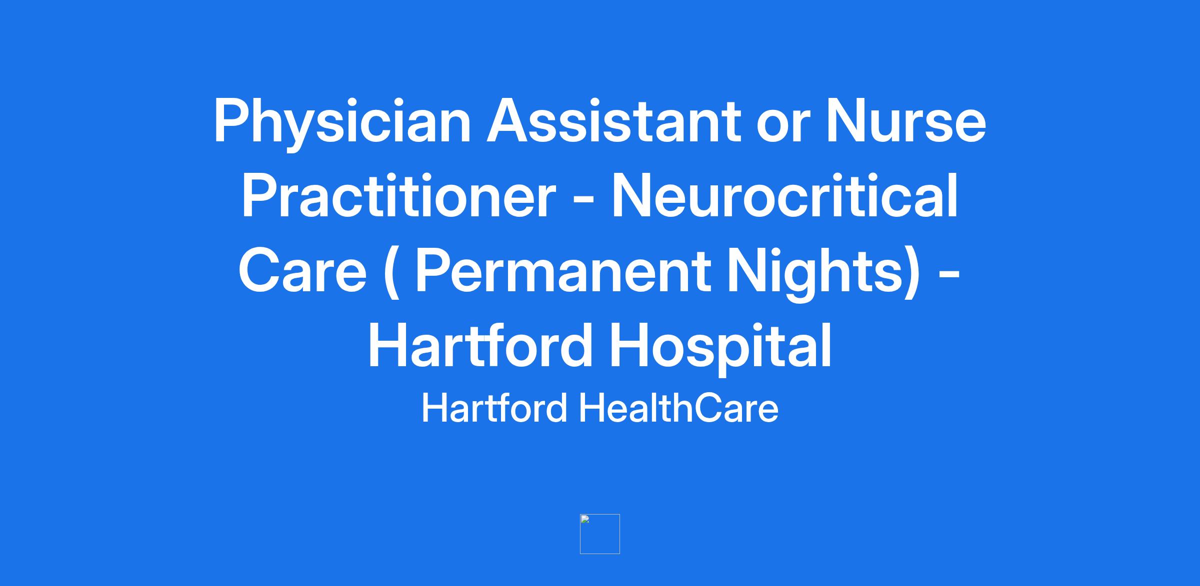Physician Assistant or Nurse Practitioner - Neurocritical Care ( Permanent Nights) - Hartford Hospital
