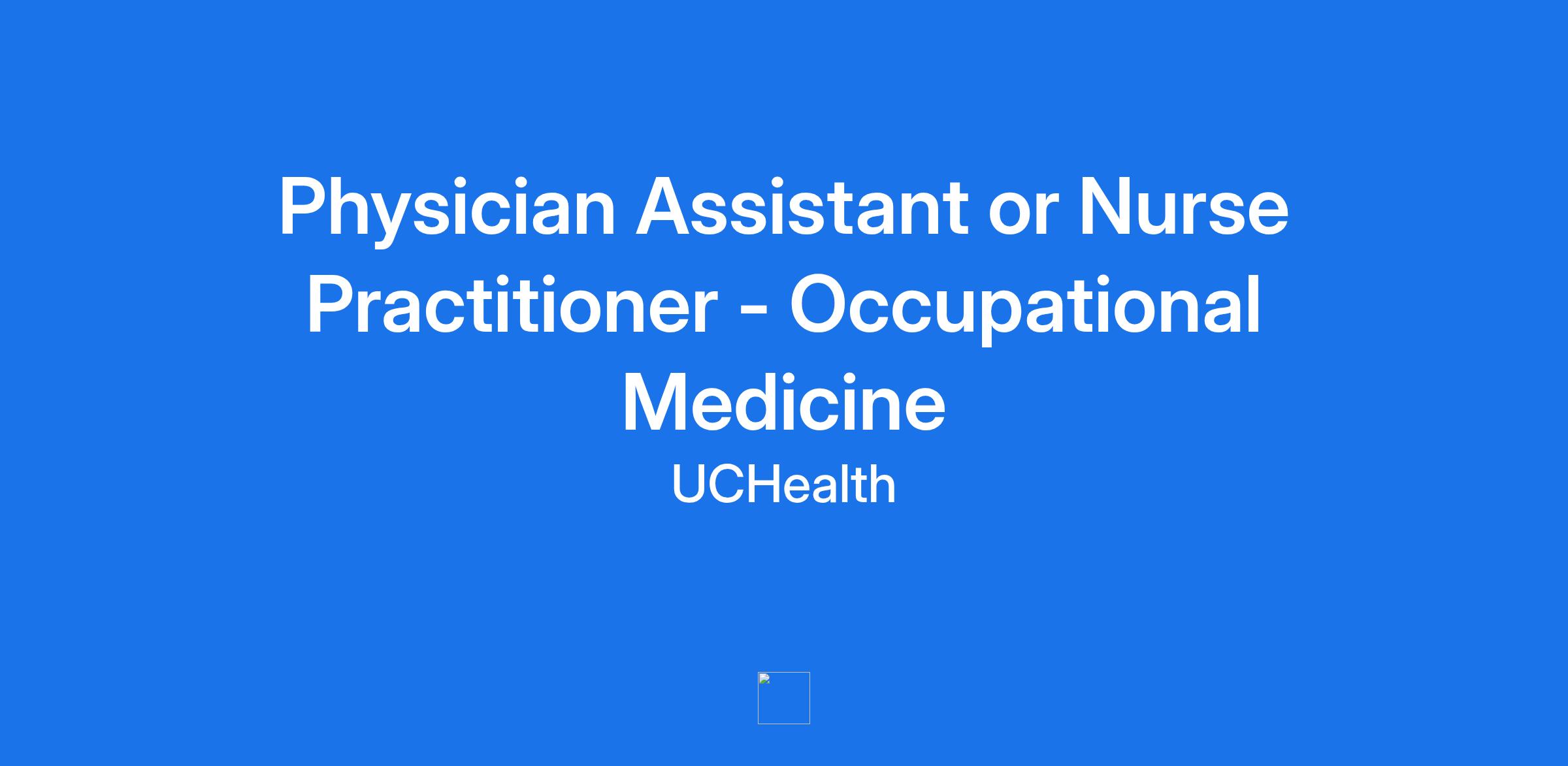 Physician Assistant or Nurse Practitioner - Occupational Medicine
