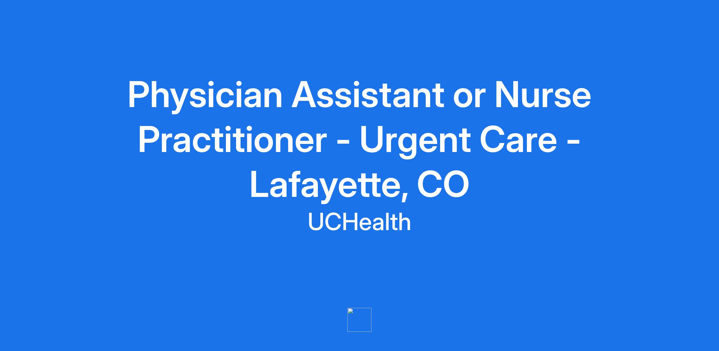 Physician Assistant or Nurse Practitioner - Urgent Care - Lafayette, CO