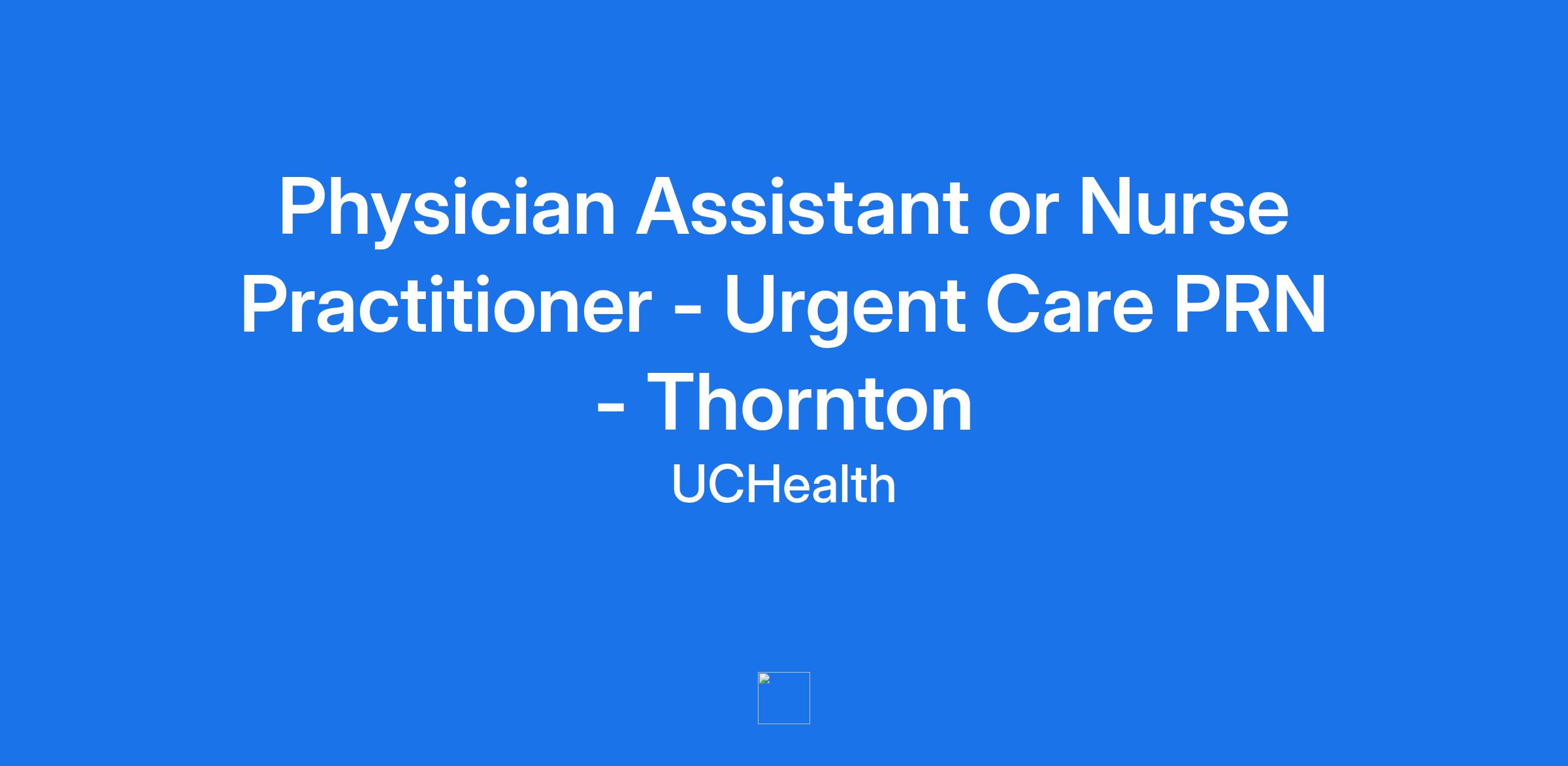 Physician Assistant or Nurse Practitioner - Urgent Care PRN - Thornton