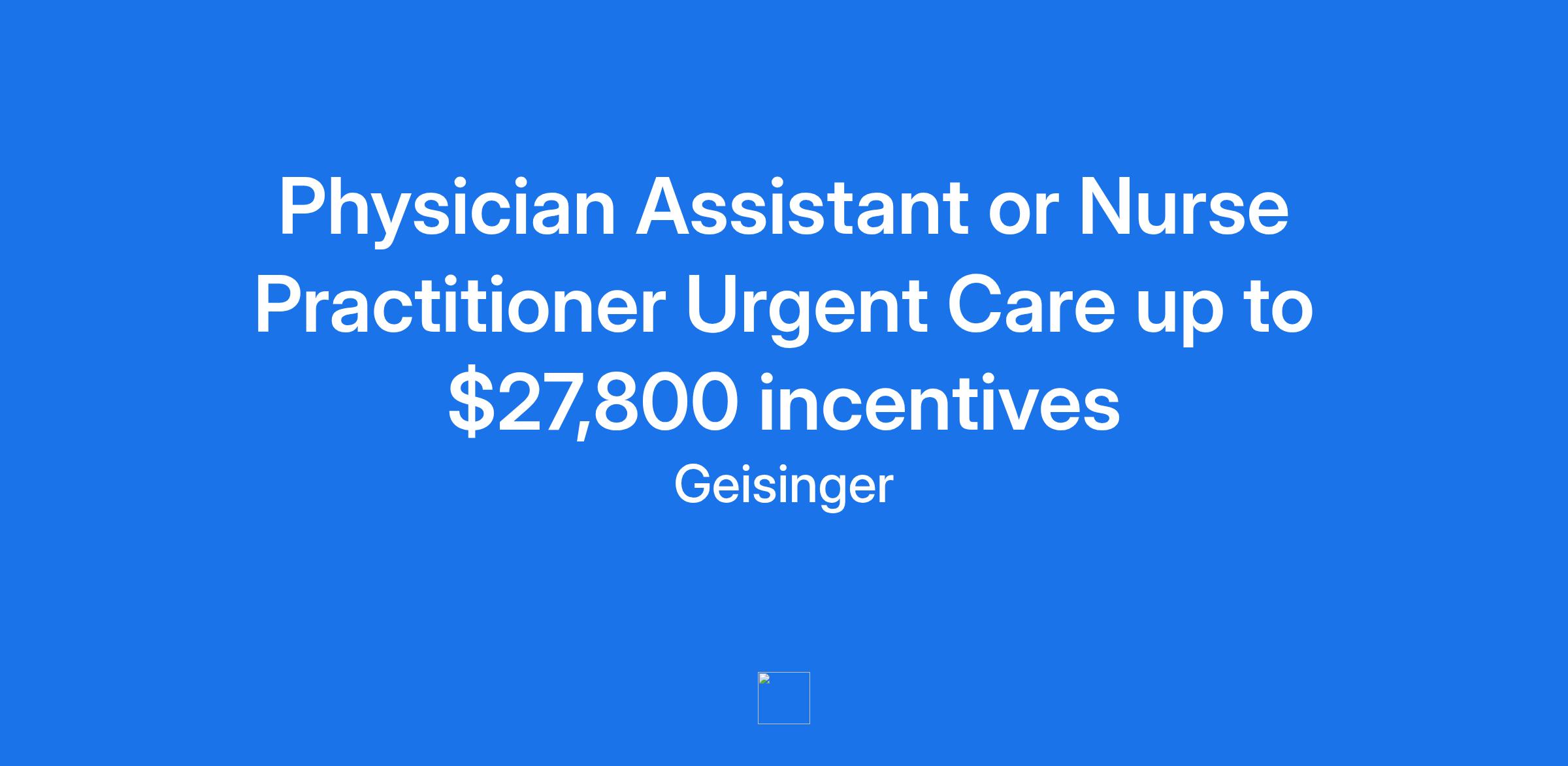 Physician Assistant or Nurse Practitioner Urgent Care up to $27,800 incentives