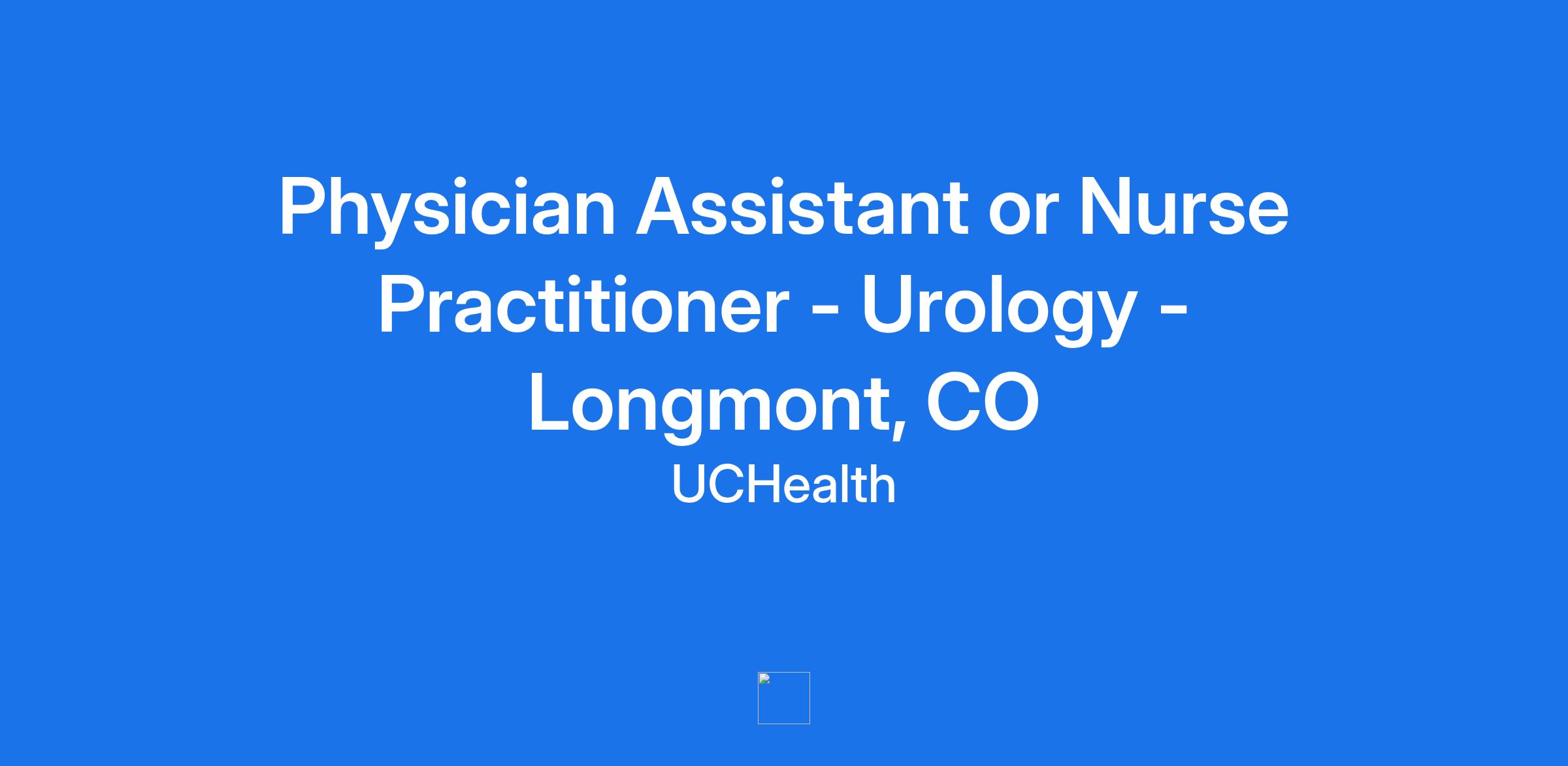 Physician Assistant or Nurse Practitioner - Urology - Longmont, CO