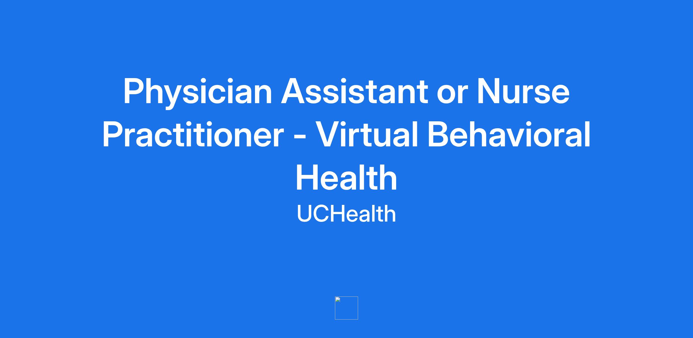 Physician Assistant or Nurse Practitioner - Virtual Behavioral Health