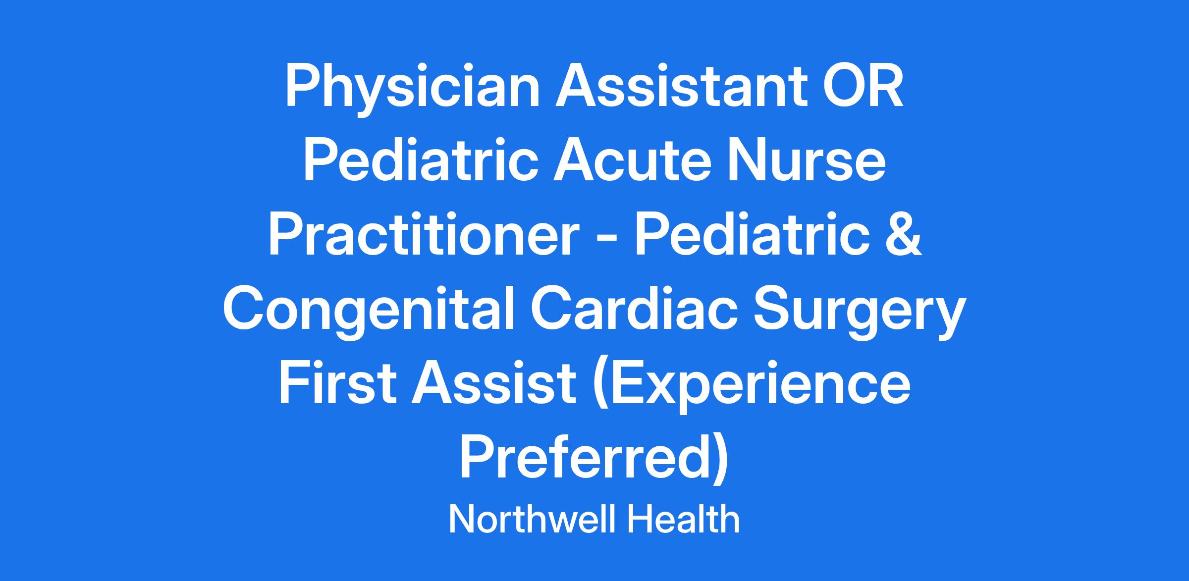 Physician Assistant OR Pediatric Acute Nurse Practitioner - Pediatric & Congenital Cardiac Surgery First Assist (Experience Preferred)