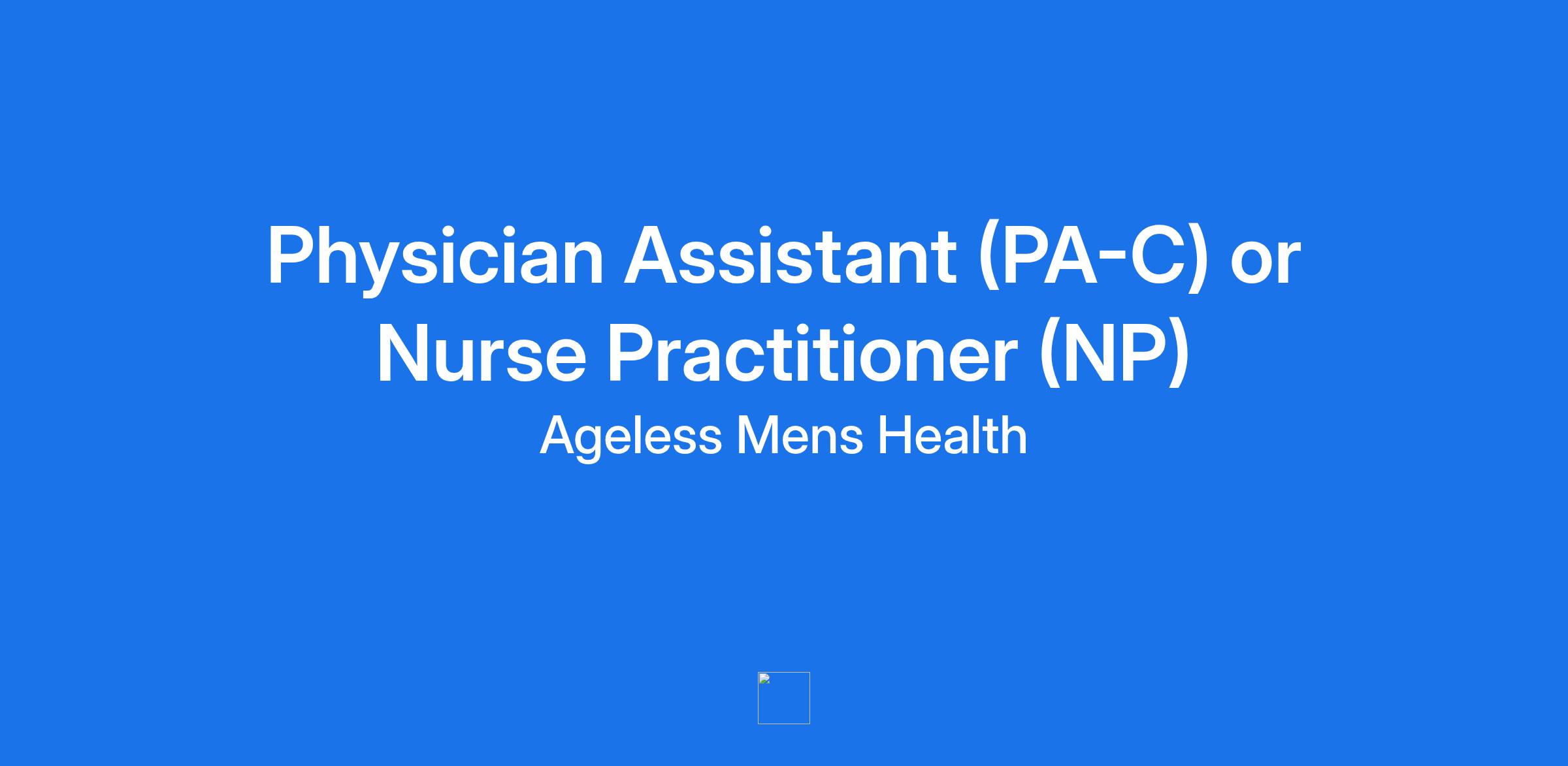 Physician Assistant (PA-C) or Nurse Practitioner (NP) – Men’s Health Clinic | Ageless Men’s Health
