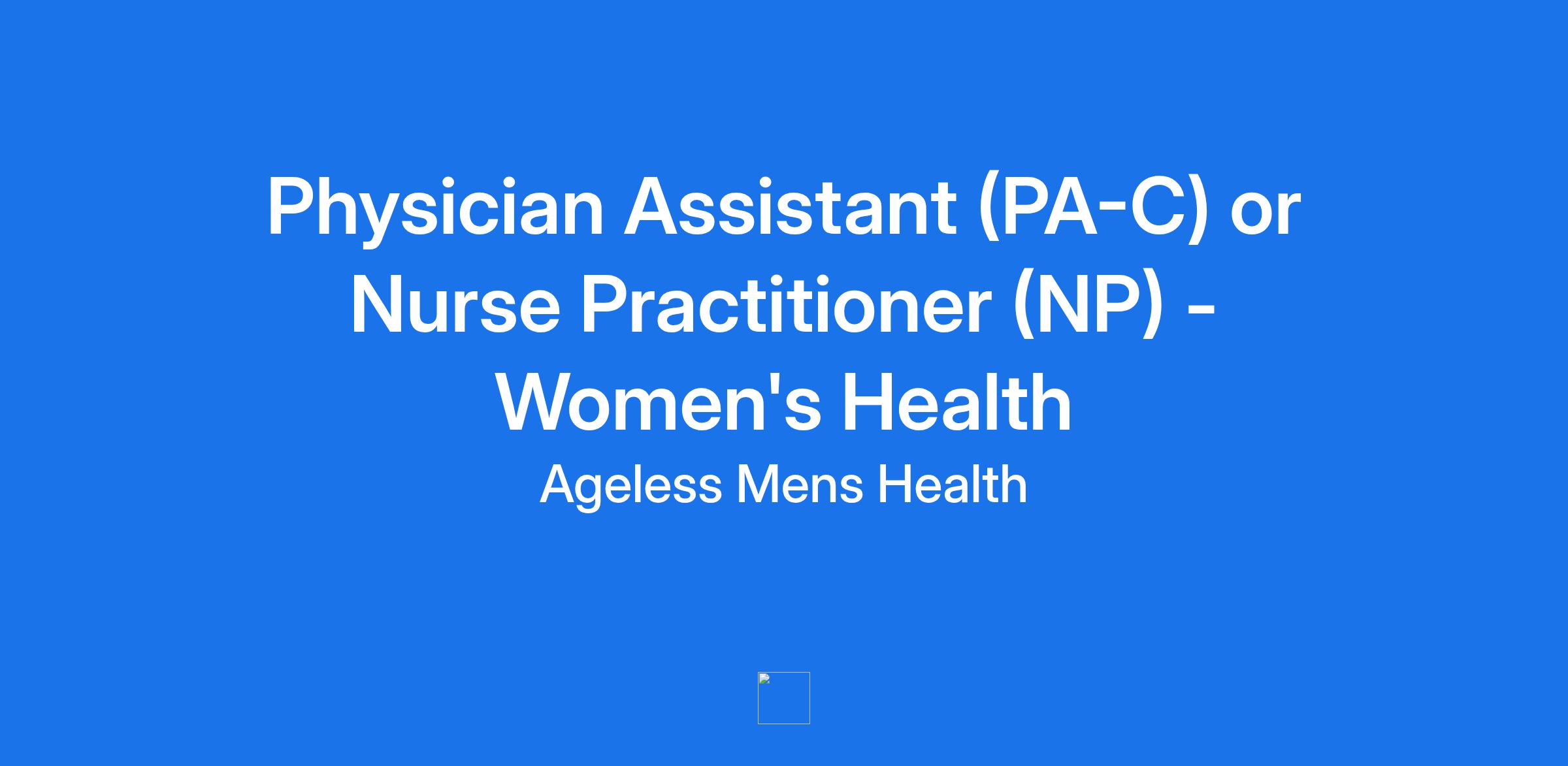 Nurse Practitioner (NP) or Physician Assistant (PA-C) – Women’s Health & Hormone Provider | Ageless Women’s Health