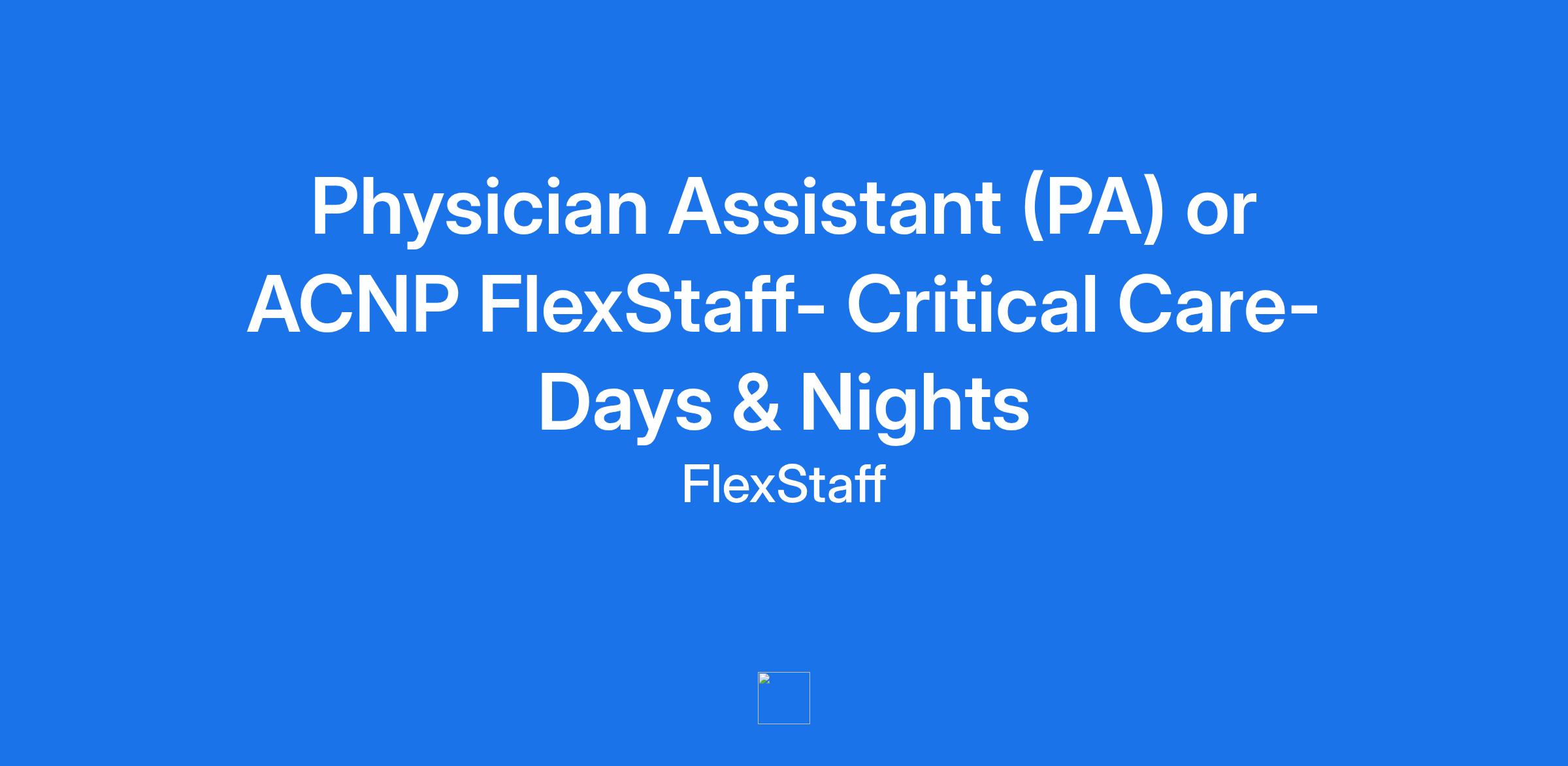 Physician Assistant (PA) or ACNP FlexStaff- Critical Care- Days & Nights