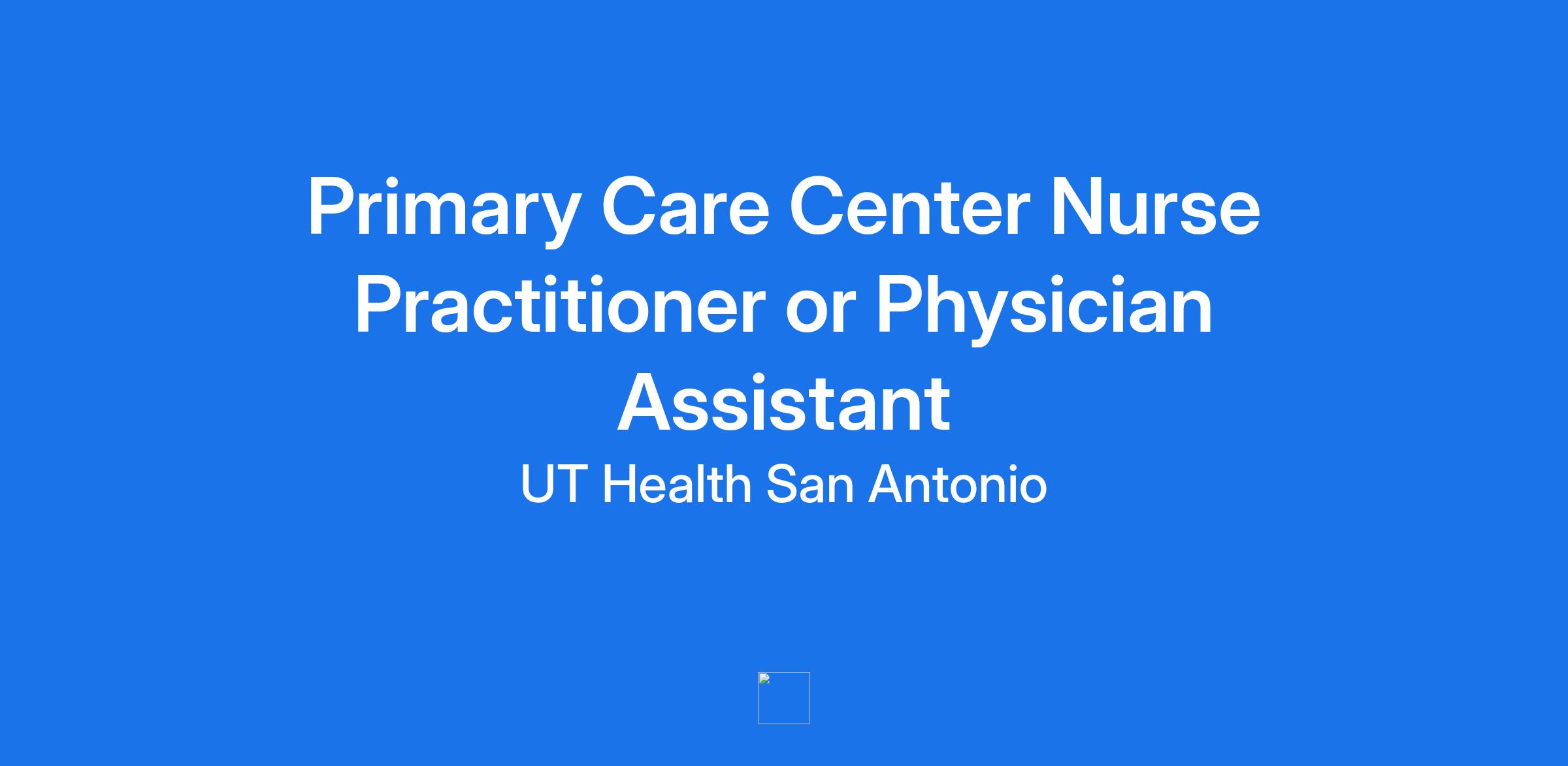 Primary Care Center Nurse Practitioner or Physician Assistant
