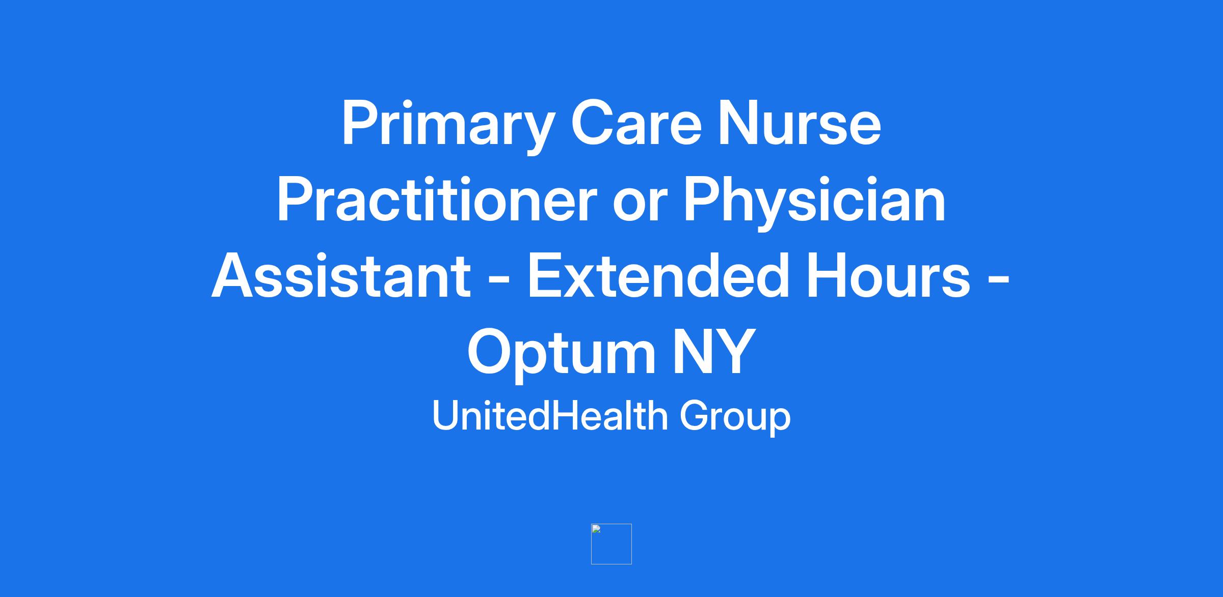 Primary Care Nurse Practitioner or Physician Assistant - Extended Hours - Optum NY