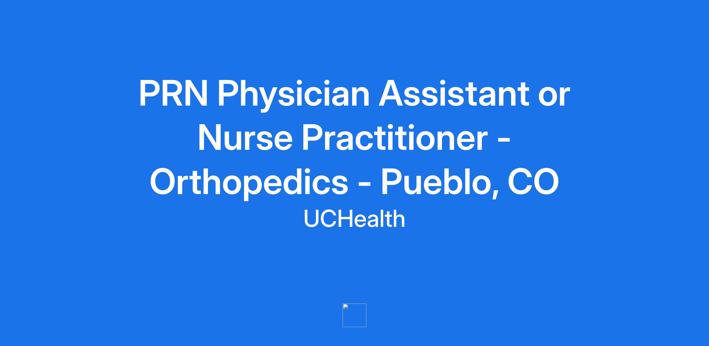 PRN Physician Assistant or Nurse Practitioner - Orthopedics - Pueblo, CO