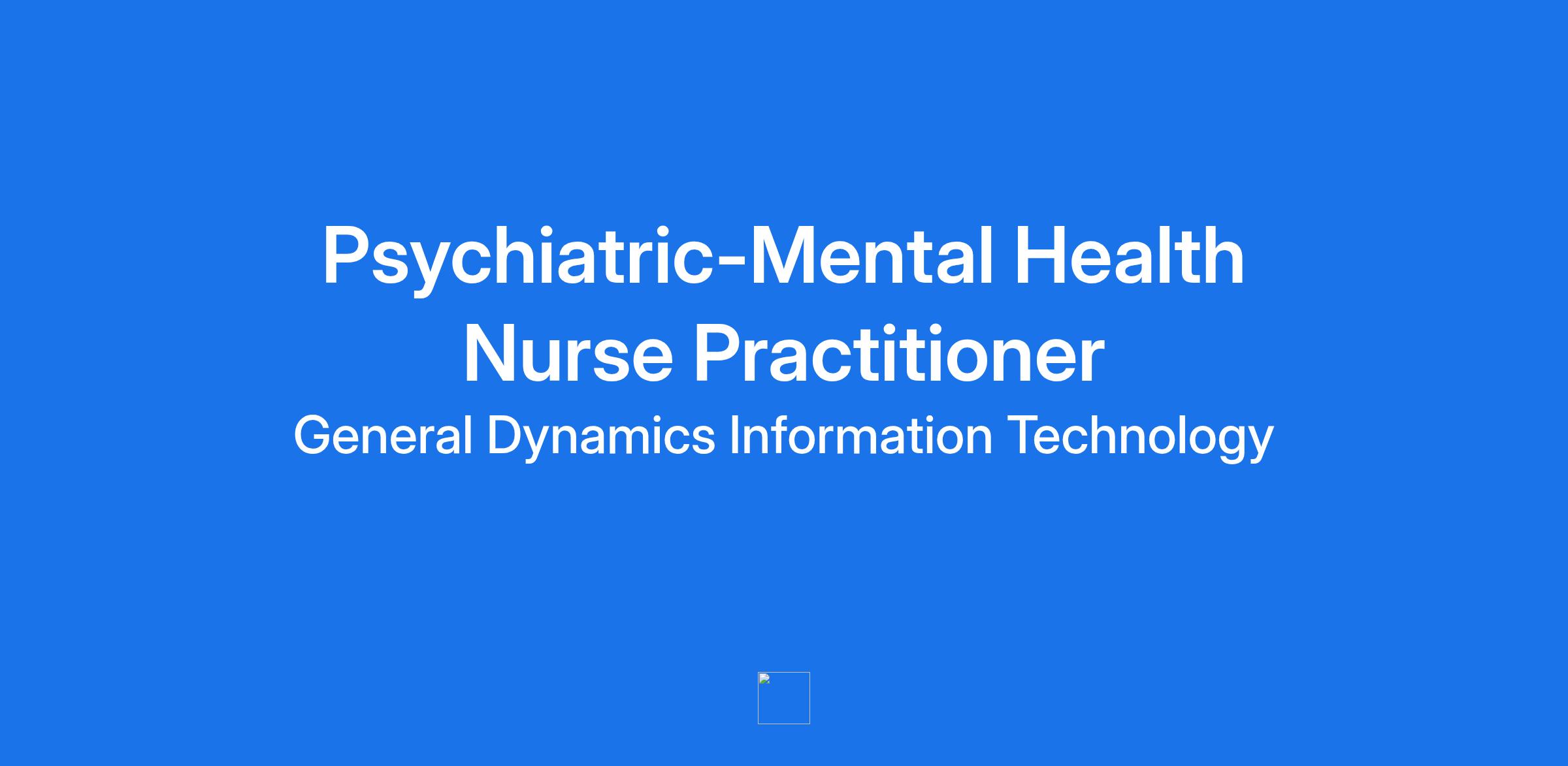 At GDIT, people are our differentiator. As a Psychiatric-Mental Health Nurse Practitioner supporting our customer, you will help ensure today is safe and tomorrow is smarter. Our work depends on a Psychiatric-Mental Health Nurse Practitioner joining our team.