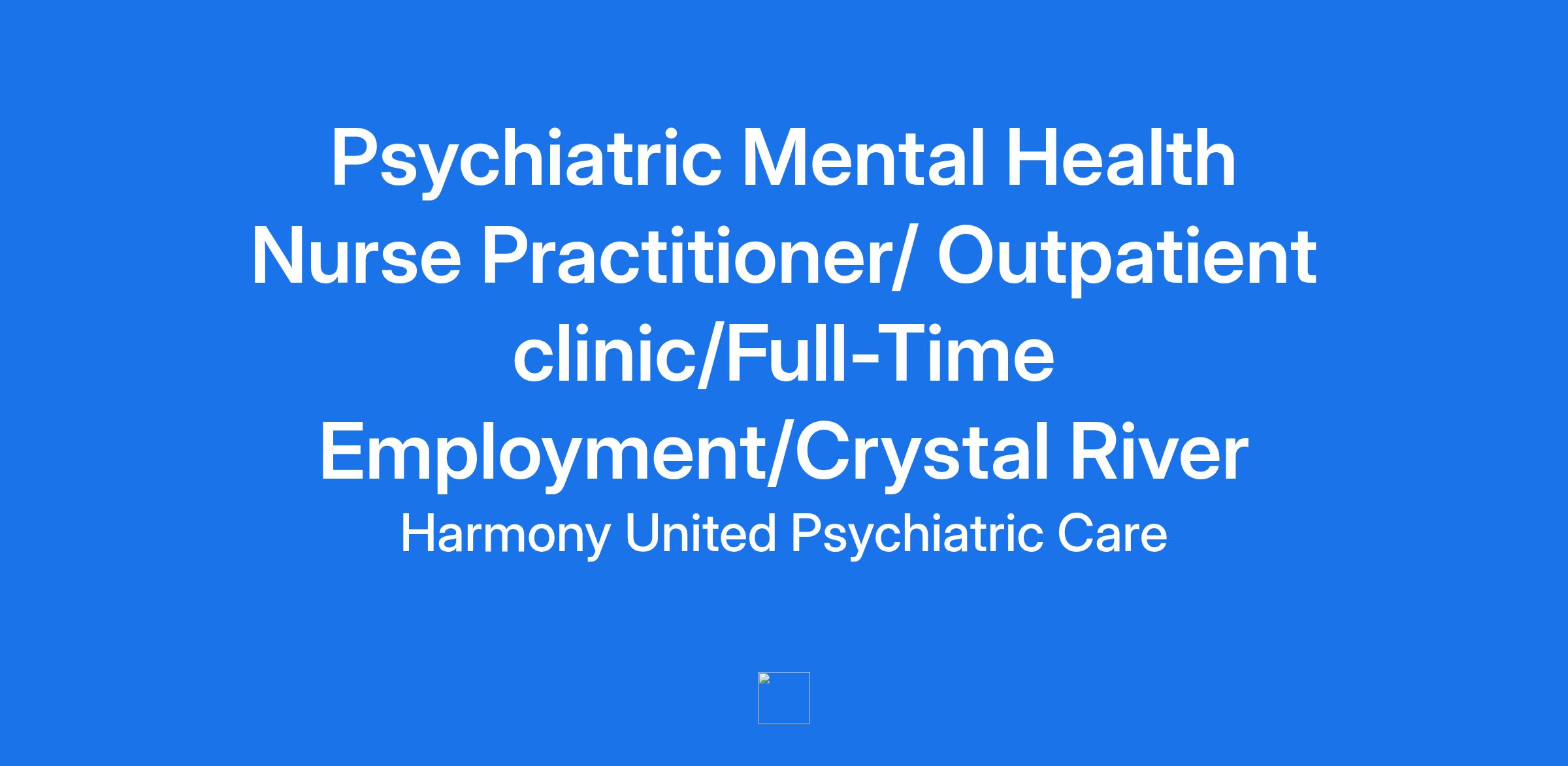 Job Title: Psychiatric Mental Health Nurse Practitioner/ Outpatient clinic/Full-Time Employment