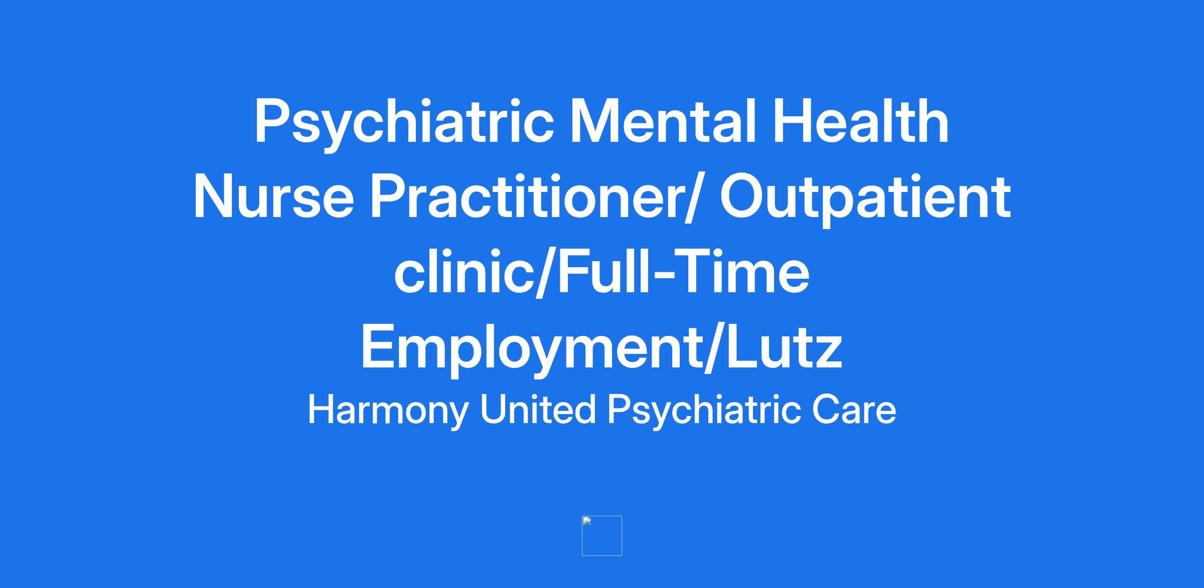 Job Title: Psychiatric Mental Health Nurse Practitioner/ Outpatient clinic/Full-Time Employment