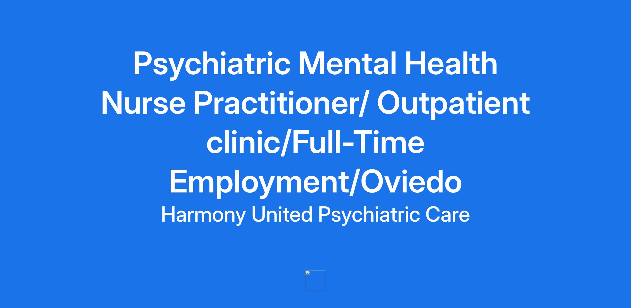 Job Title: Psychiatric Mental Health Nurse Practitioner/ Outpatient clinic/Full-Time Employment