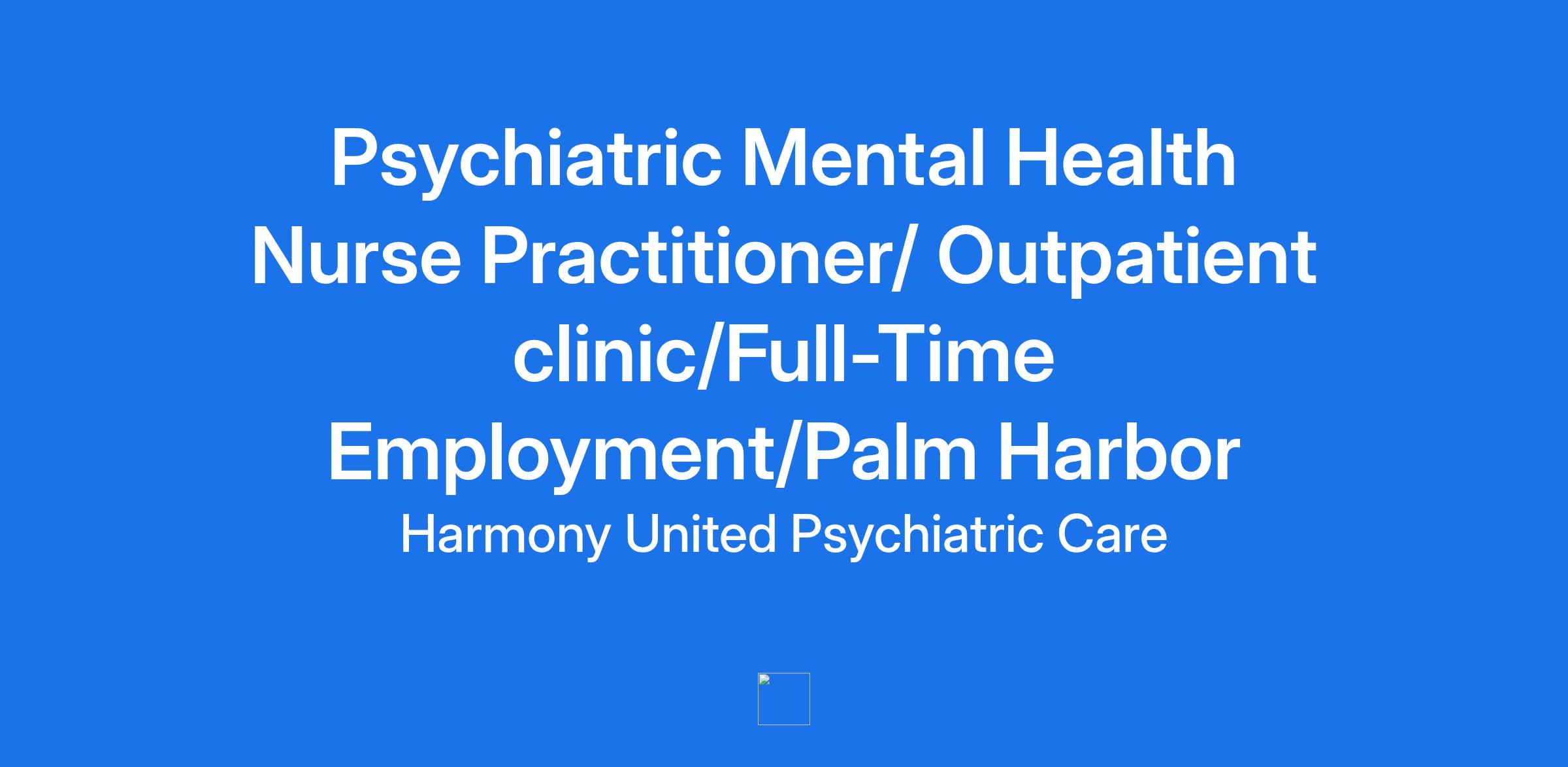 Job Title: Psychiatric Mental Health Nurse Practitioner/ Outpatient clinic/Full-Time Employment