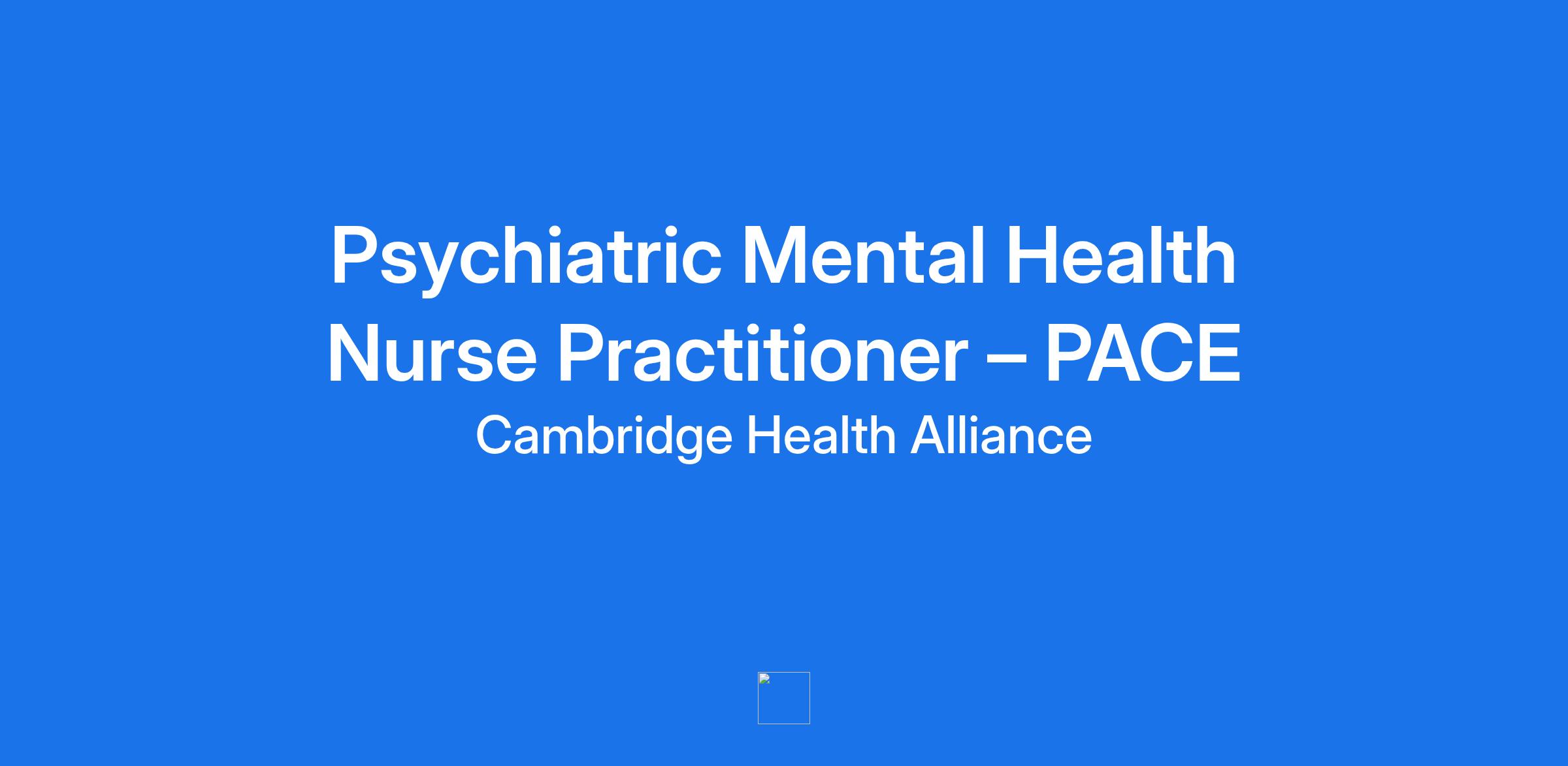 **Cambridge Health Alliance (CHA)** , a well-respected, nationally recognized and award-winning public healthcare system **is seeking a full time Psychiatric Mental Health Nurse Practitioner, to join our CHA PACE Program** . CHA PACE is a Program of All Inclusive Care for the Elderly (PACE) at Cambridge Health Alliance (CHA). CHA PACE serves adults 55 years and older with chronic medical and/or mental health difficulties with the goals of achieving the highest level of community independence and preventing nursing home placement. CHA PACE’s high functioning interdisciplinary team works to fully integrate and coordinate medical and behavioral health care, community resources, and in-home support services.